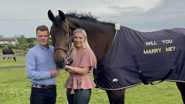 He’s a keeper! Boyfriend enlists rider’s horse of a lifetime – and his rug – for surprise proposal