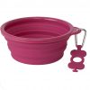 Take a doggy water bottle with you, to enable you to give your dog a drink if he is panting more than normal. Special bottles have a built-in bowl so you can use it on the go.
