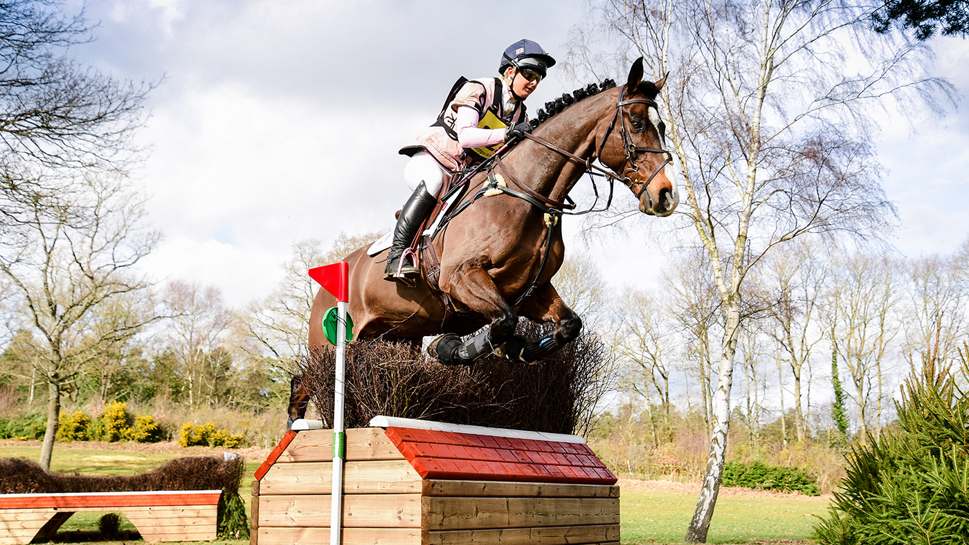 Becky Woolven and the popular Charlton Down Riverdance, owned by his rider and Julie Record, fly a fence at Tweseldown. This pair made an impressive debut at Burghley in 2016, finishing 17th.