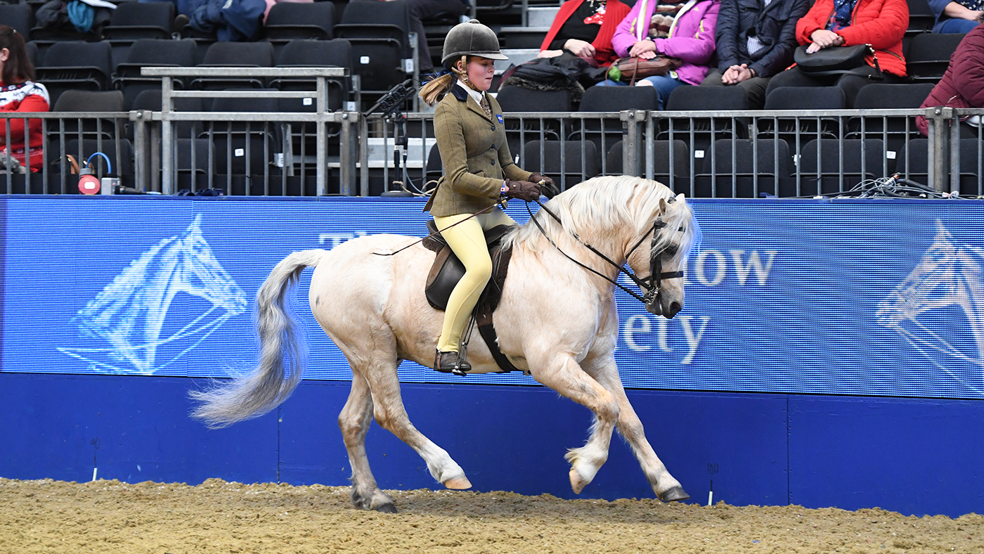 Sue Kernan’s typey palamino stallion Lledrith Nemesis was making his first appearance at Olympia, ridden by Chloe Lemieux.