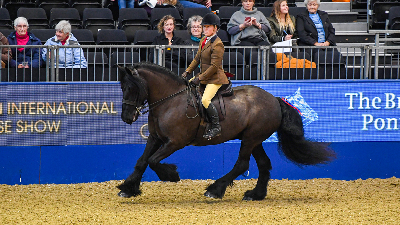 Lynn Scott’s consistent stallion Lynuck The Showman and Rebecca Penny topped a competitive breed section after winning HOYS together in October.