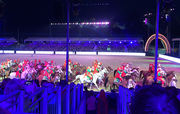 6. The amazing acrobatic riders — their Karabakh horses from Azerbaijan galloped flat out across the arena through a temporary lane made with tapes, while their riders did remarkable feats such as swinging themselves right down under the girth and back up the other side, or doing the same under the horse’s neck.