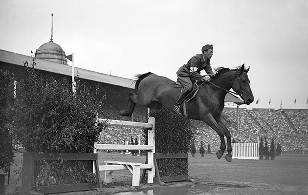 Forty-four riders from 15 nations took part in the jumping competition, with Mexico’s Humberto Mariles taking the individual gold. While Mexico also took the team gold, the British team made up of Harry Llewellyn (pictured below training for the Games), Henry Nicoll and Arthur Carr finished with the bronze.