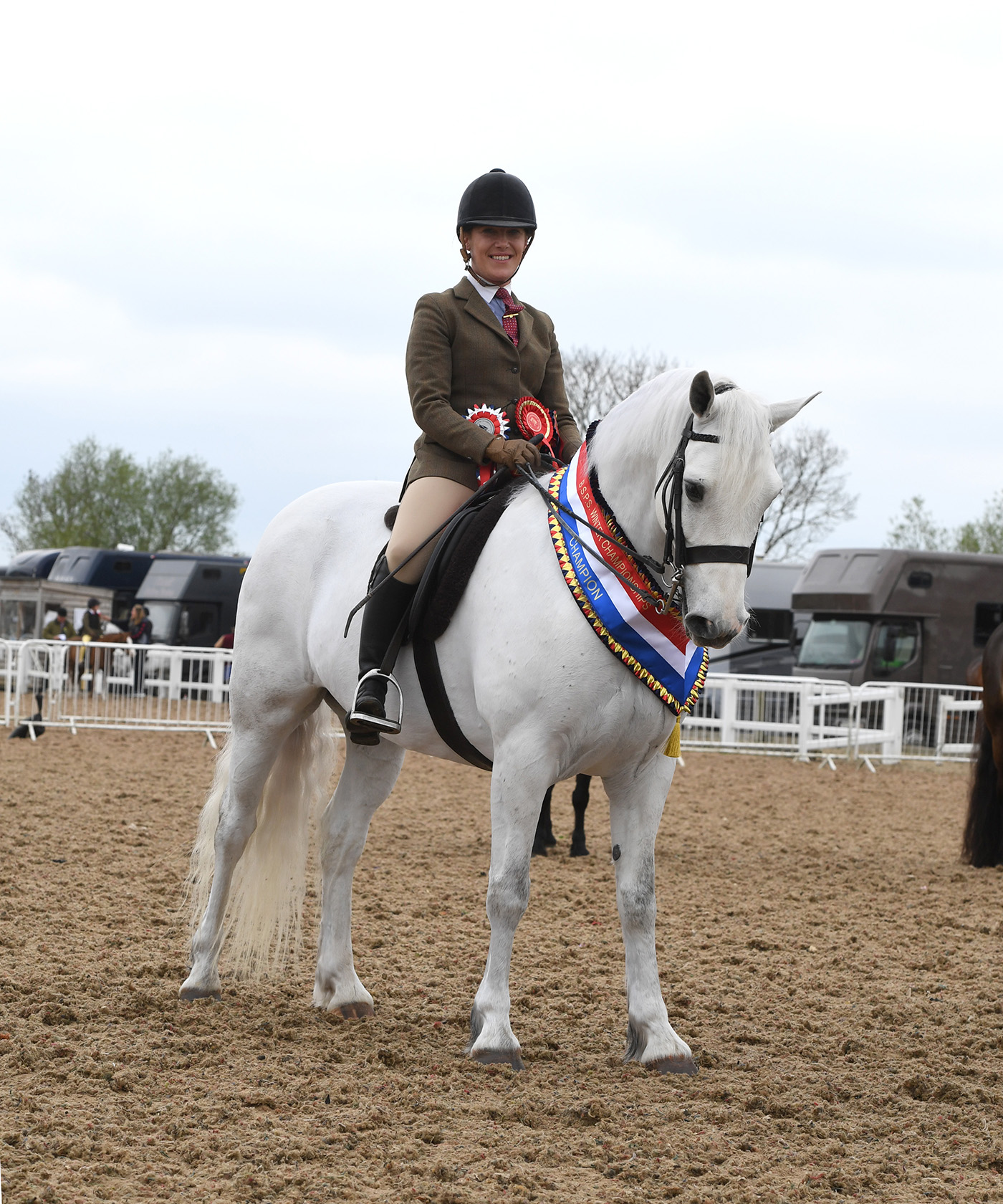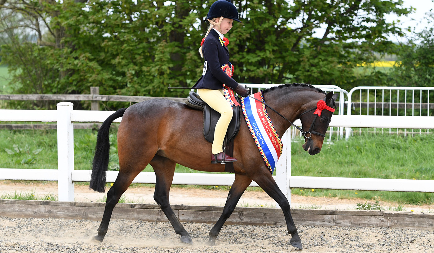 Despite coming second in their class, Florence Milczarek and the Welsh section A head the RIHS Pretty Polly mini Heritage championship.