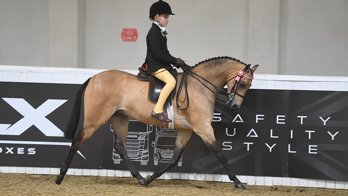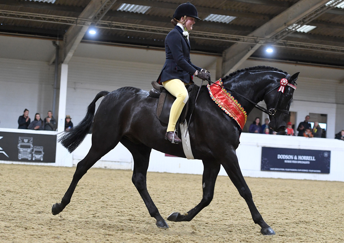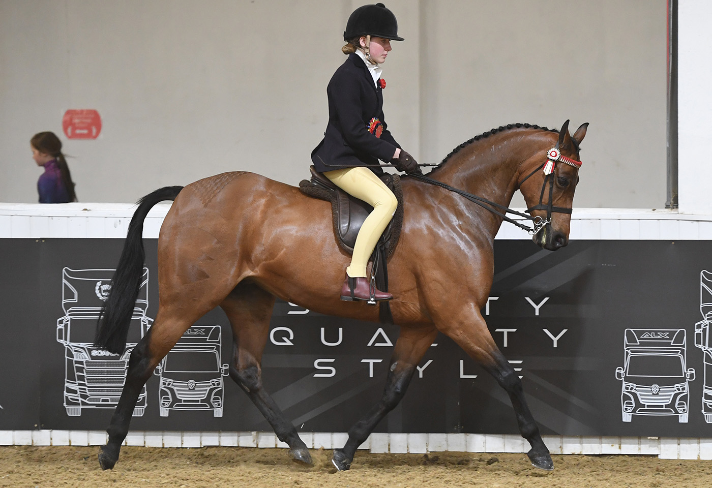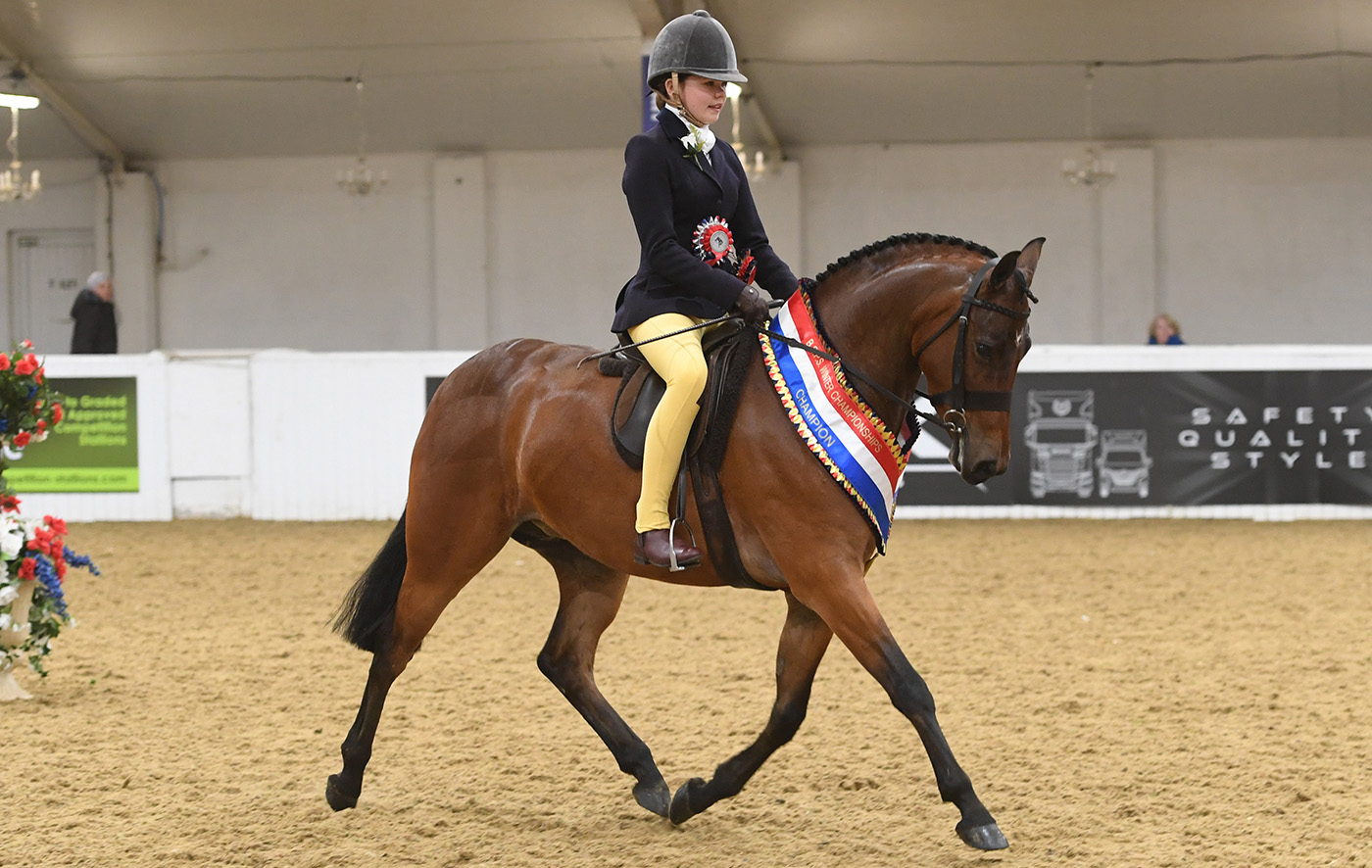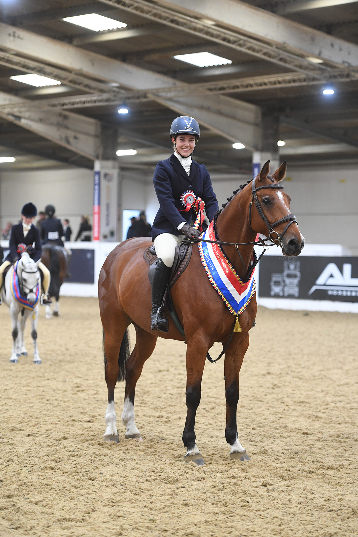 Poppy Carter is in the saddle of Danni Radford’s home-bred gelding, who wins novice, restricted and RIHS intermediate titles on his BSPS winter championships debut.