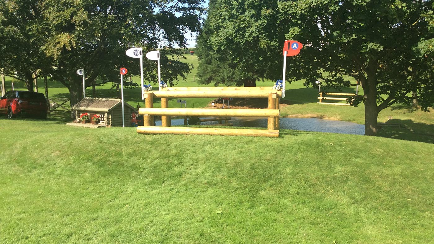 Fence 5a and b: Discovery Valley — over the hanging log then five strides to the double brush on the mound