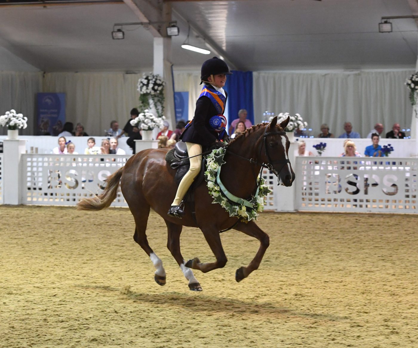 Mia Donaldson steers her 133cm contender to the supreme show hunter pony title at the BSPS summers.