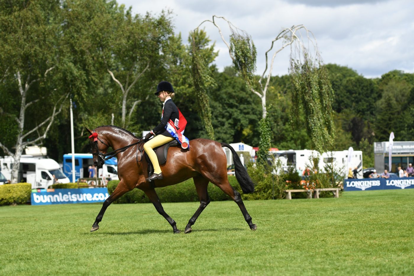 The big-moving part-bred pony and India Till enjoy a stride across the main arena at Hickstead as they stand supreme pony at the RIHS.