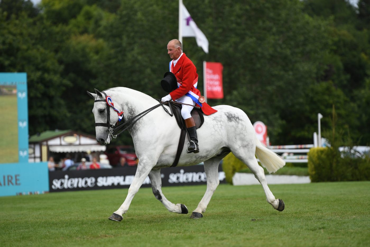 Caroline Tyrrell’s legendary cob and his equally renowned rider Allister Hood storm their way down Hickstead’s main arena after clinching the supreme horse title at the Royal International (RIHS).