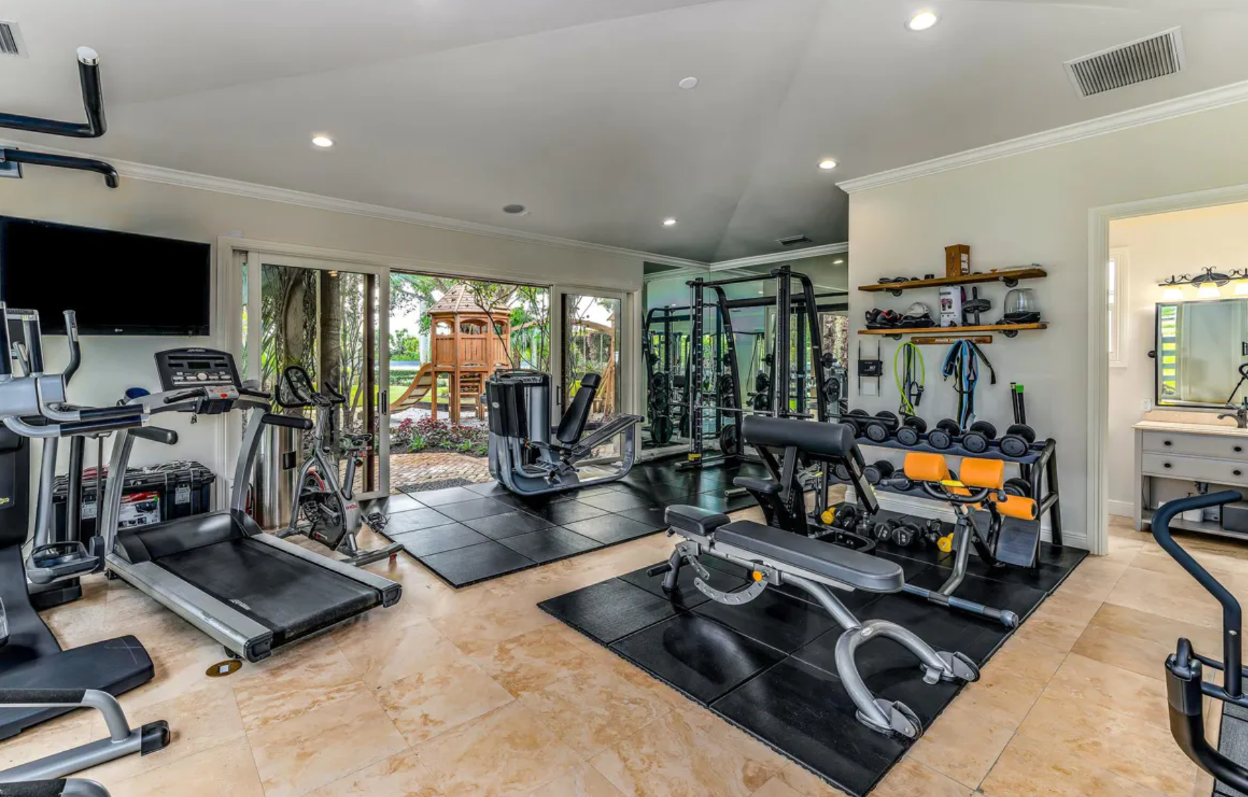 It will be easy to keep in shape thanks to this home gym, and pool.