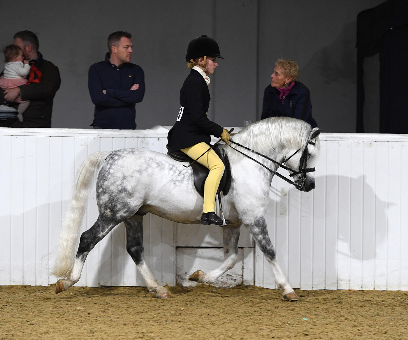 The Welsh section D breed class goes to Ellena Thomas aboard her own home-produced stallion.