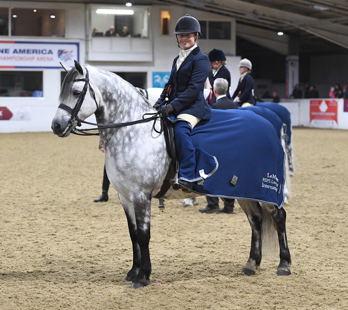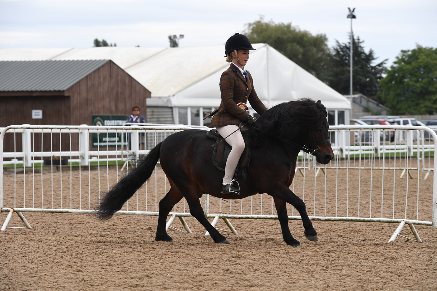 Lilly Ahern-Lee pilots Rachel Brightmore’s superstar Shetland gelding to second in the small breeds Liverpool semi-final.