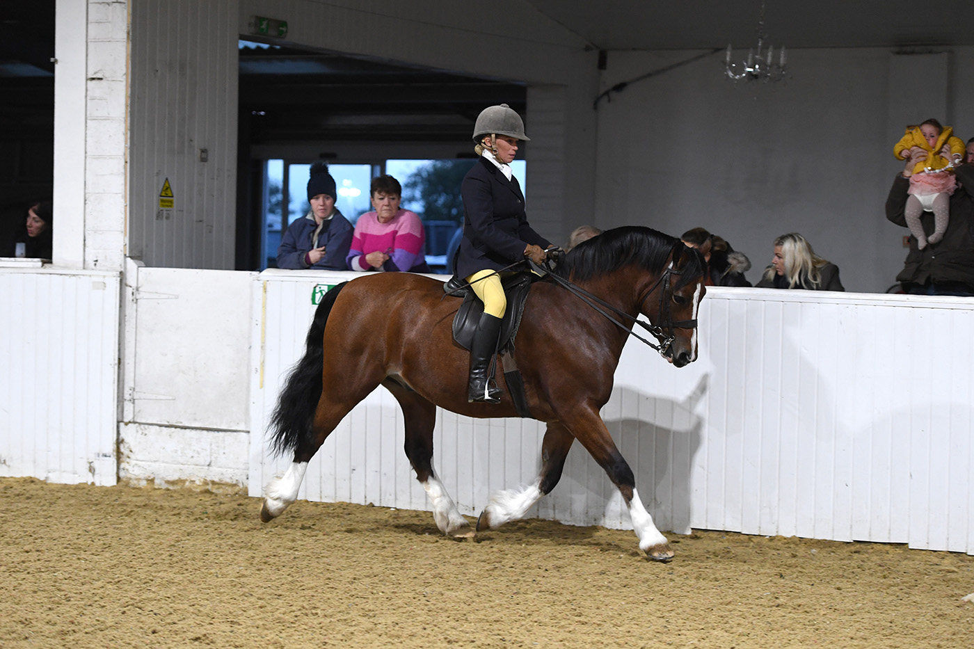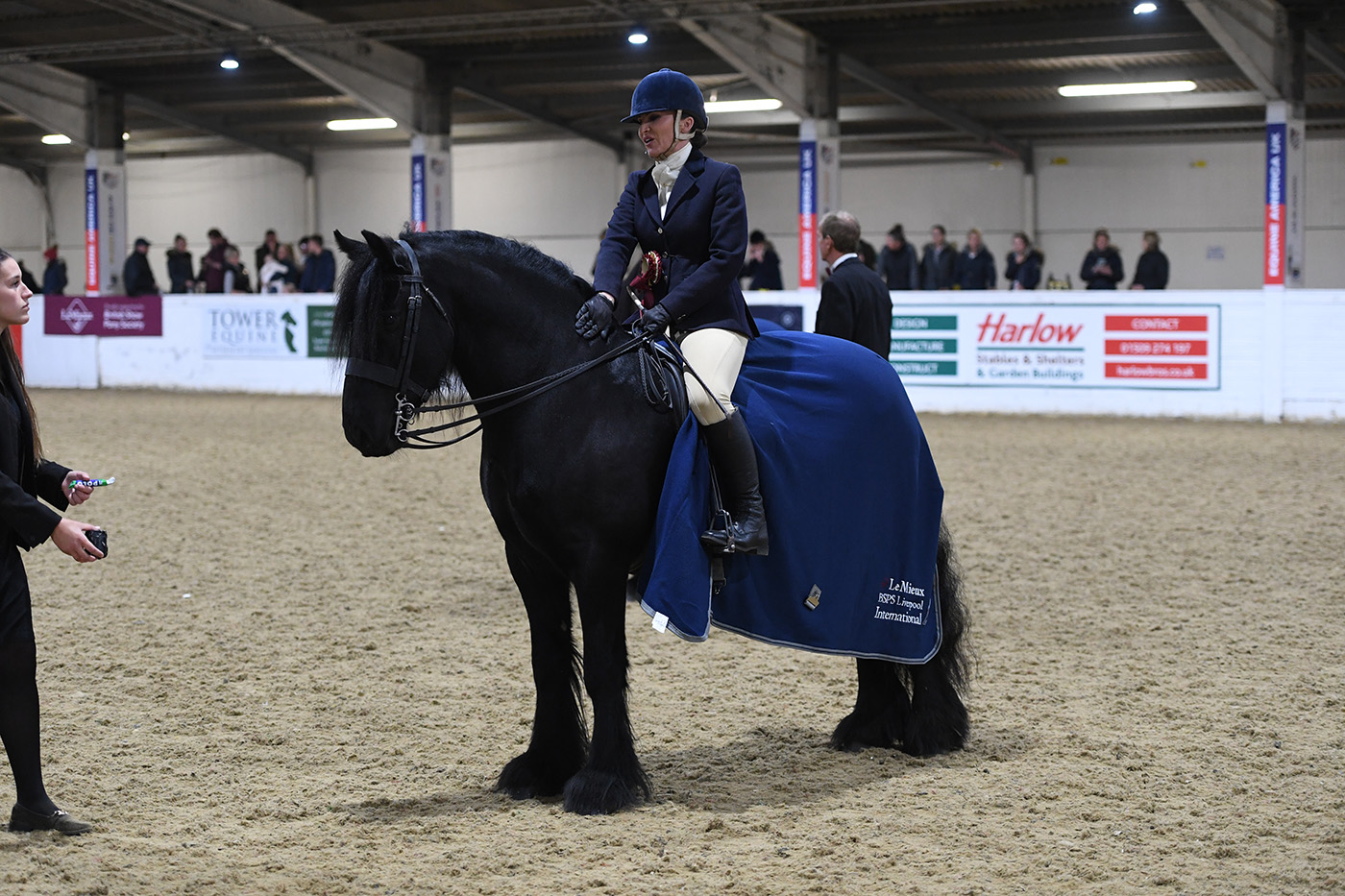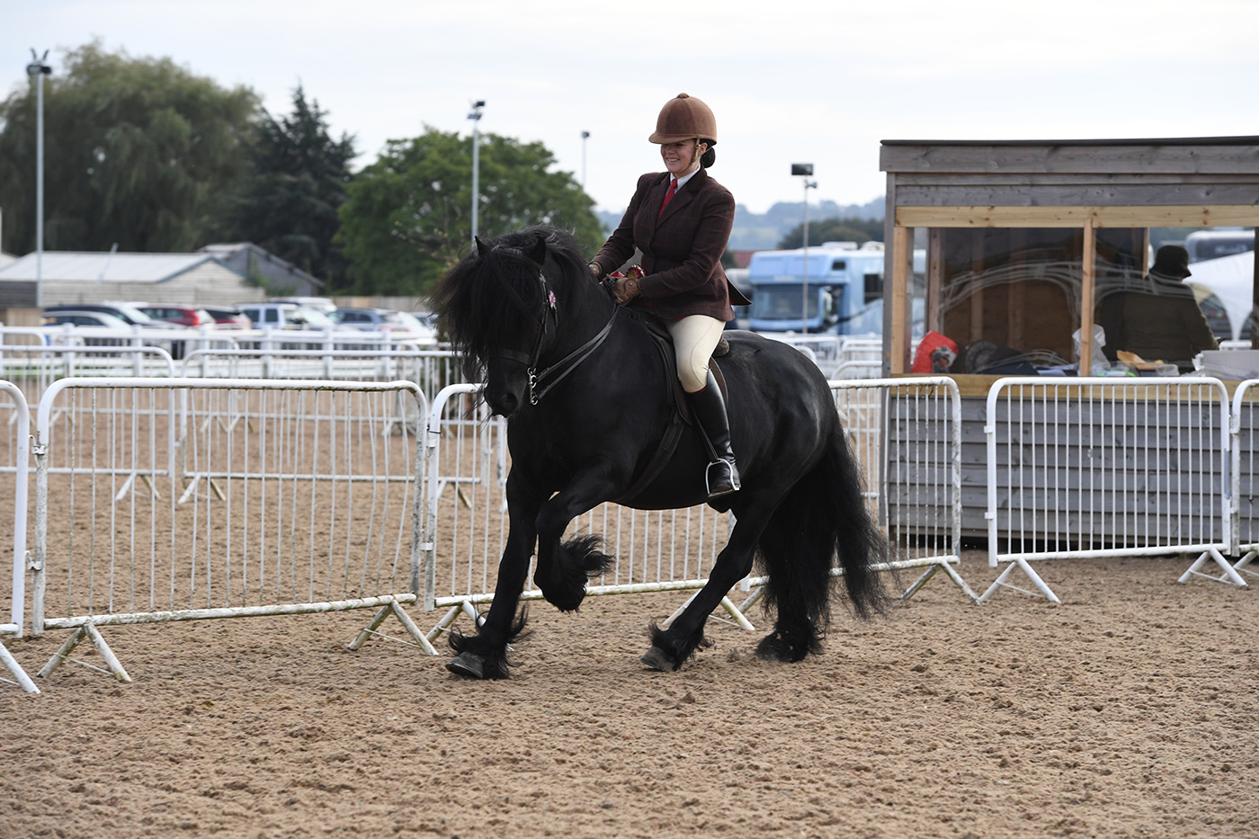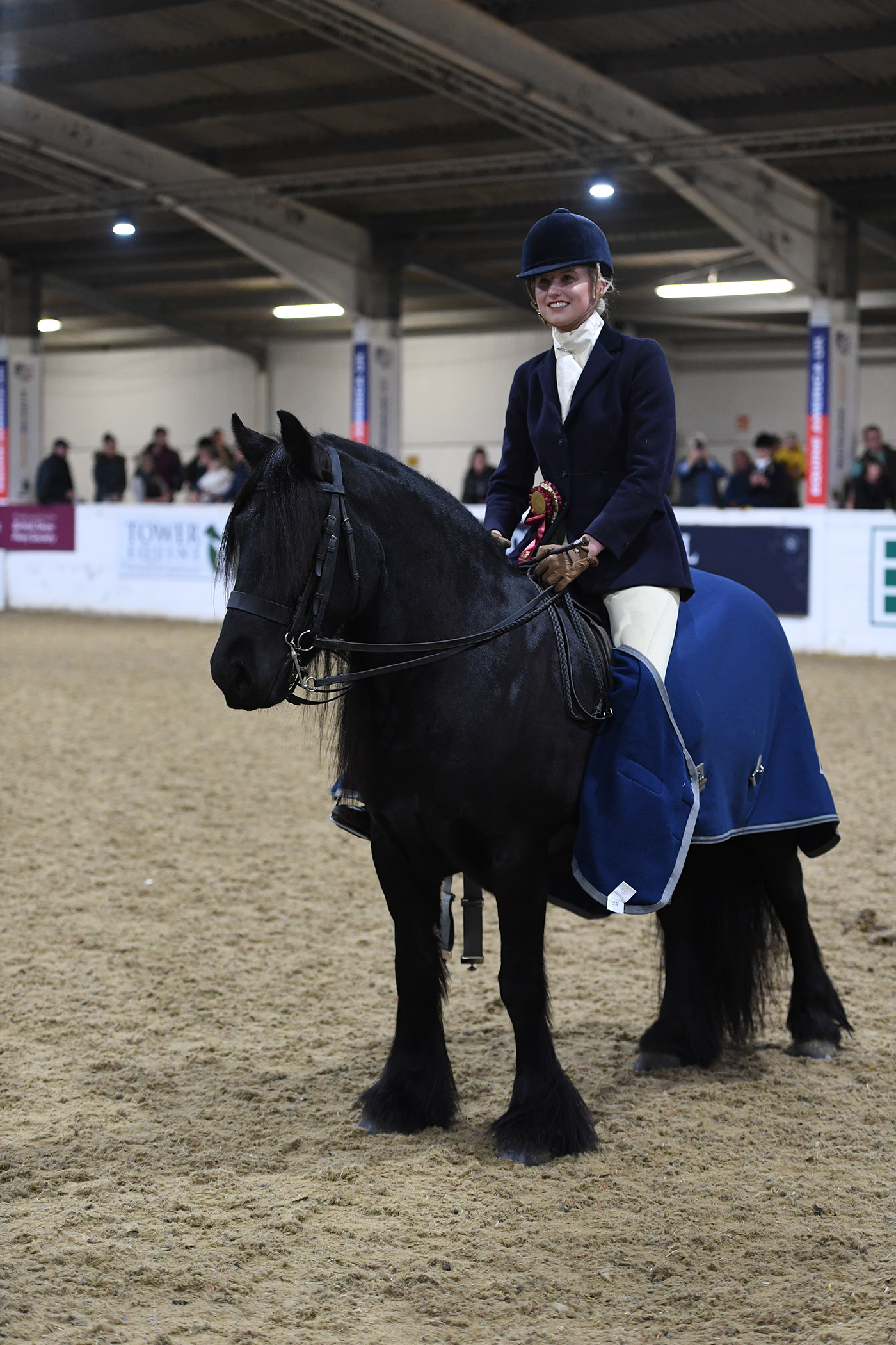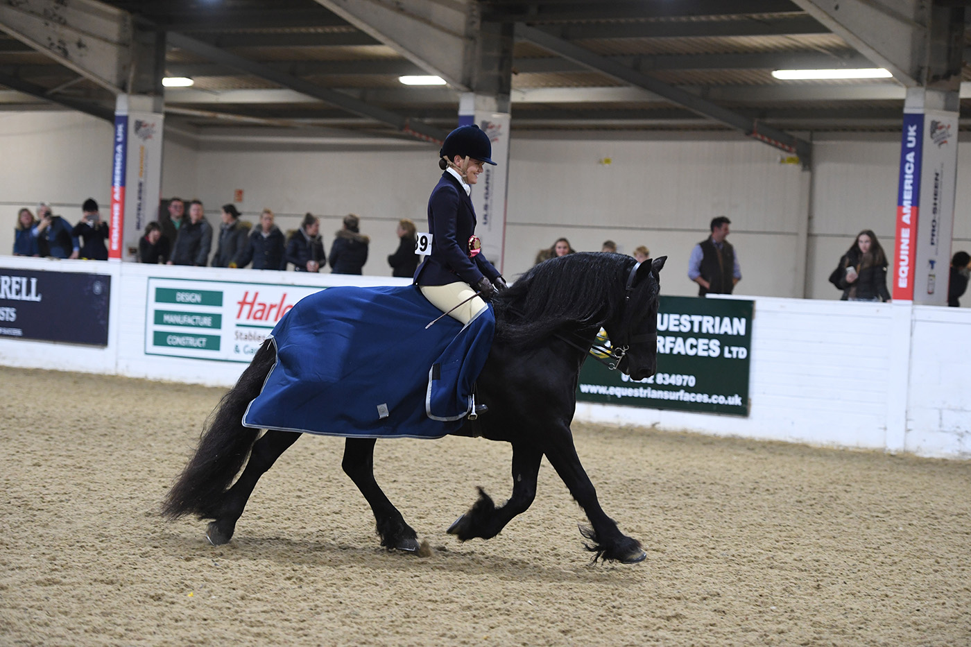 The Fell stallion with Hayley Reynolds, who was riding for owner Zoe Marsden.