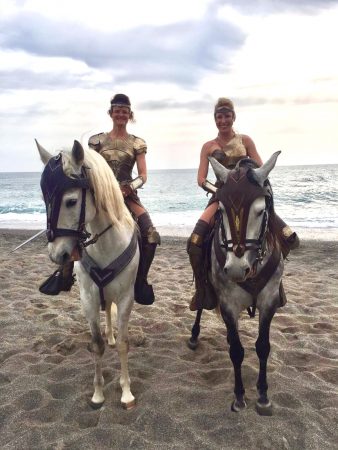People have always known me for being a good horsewoman and I think that’s what helped me get a foot in the door on Wonder Woman. I grew up with the Devil’s Horsemen so have always done wild things on ponies, but for the most part I crash cars, so it was fun being able to do horses again on Wonder Woman.