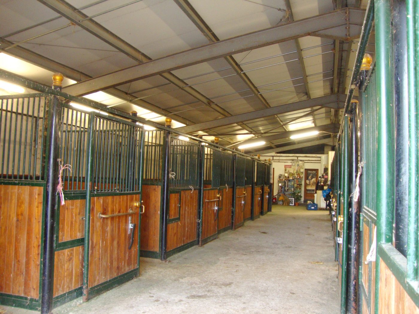 There are 19 stables in total, split between two yards. The high-quality indoor timber stables are spacious. There is a tack room and storage space at one end of the barn.