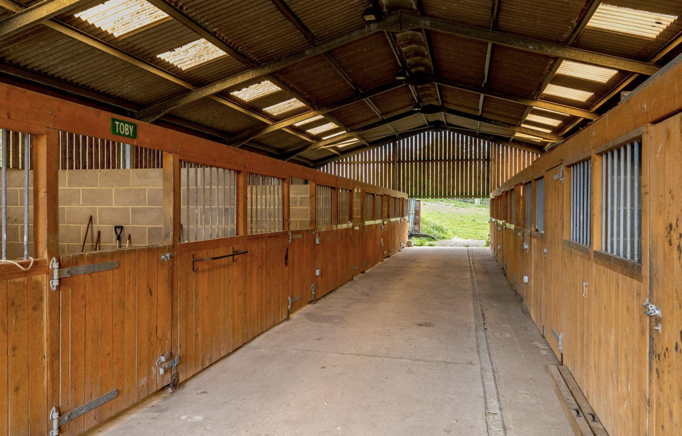 Attached to the farmhouse is a covered cow byre, which can be used for external storage, with a sheep house at the far end and a store attached behind it in a kitchen garden area. To the far side of the barn and accessible from the stable block is an office with adjacent store and attached toilet and shower room.
