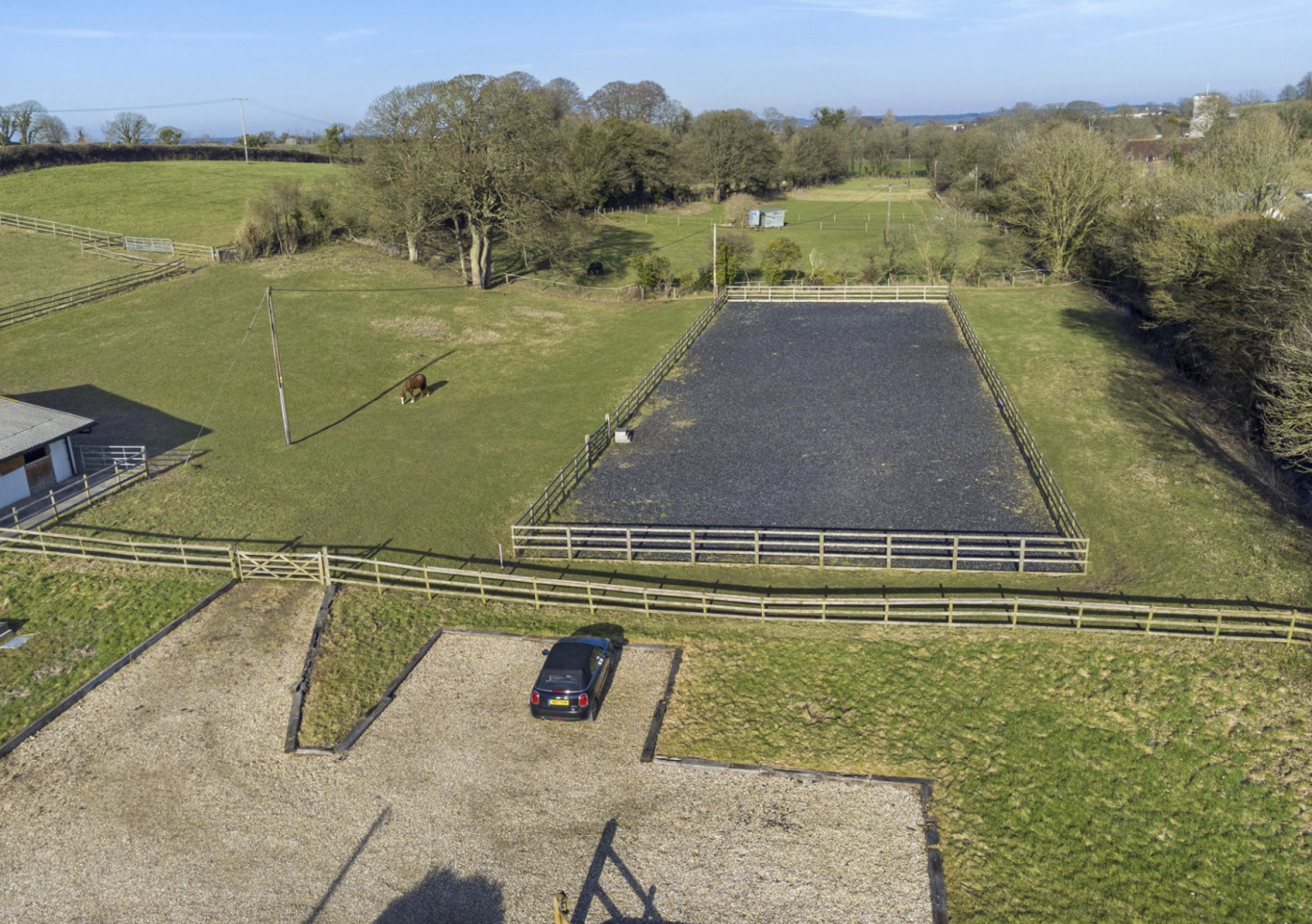 Seven front-facing, external loose boxes with overhung roof and hardstanding overlook an all-weather manége, with an Equitrack surface and recently renewed sub-surface drainage.