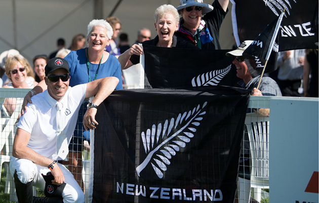 Crowd pleaser: Andrew Nicholson and Nereo enter the arena after going clear cross-country. The following day the gelding was sent to the holding box at the final veterinary inspection and Andrew made the decision to withdraw him from the competition, and retire him from top-level competition in front of a cheering crowd