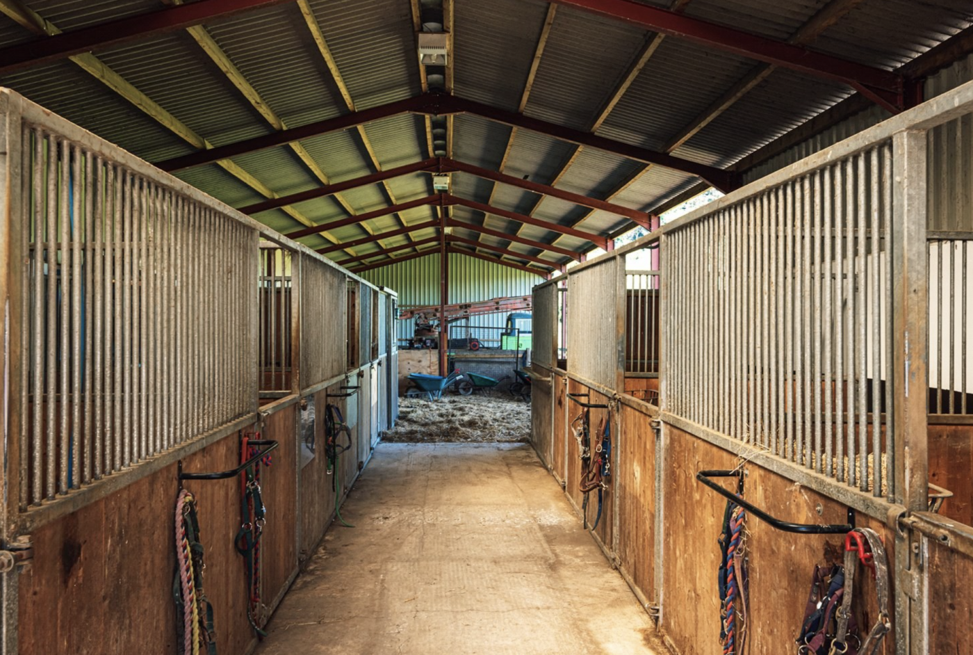 There is a 36m long partly open-sided American-style stable barn, which includes eight stables, a tack room and large hay store.