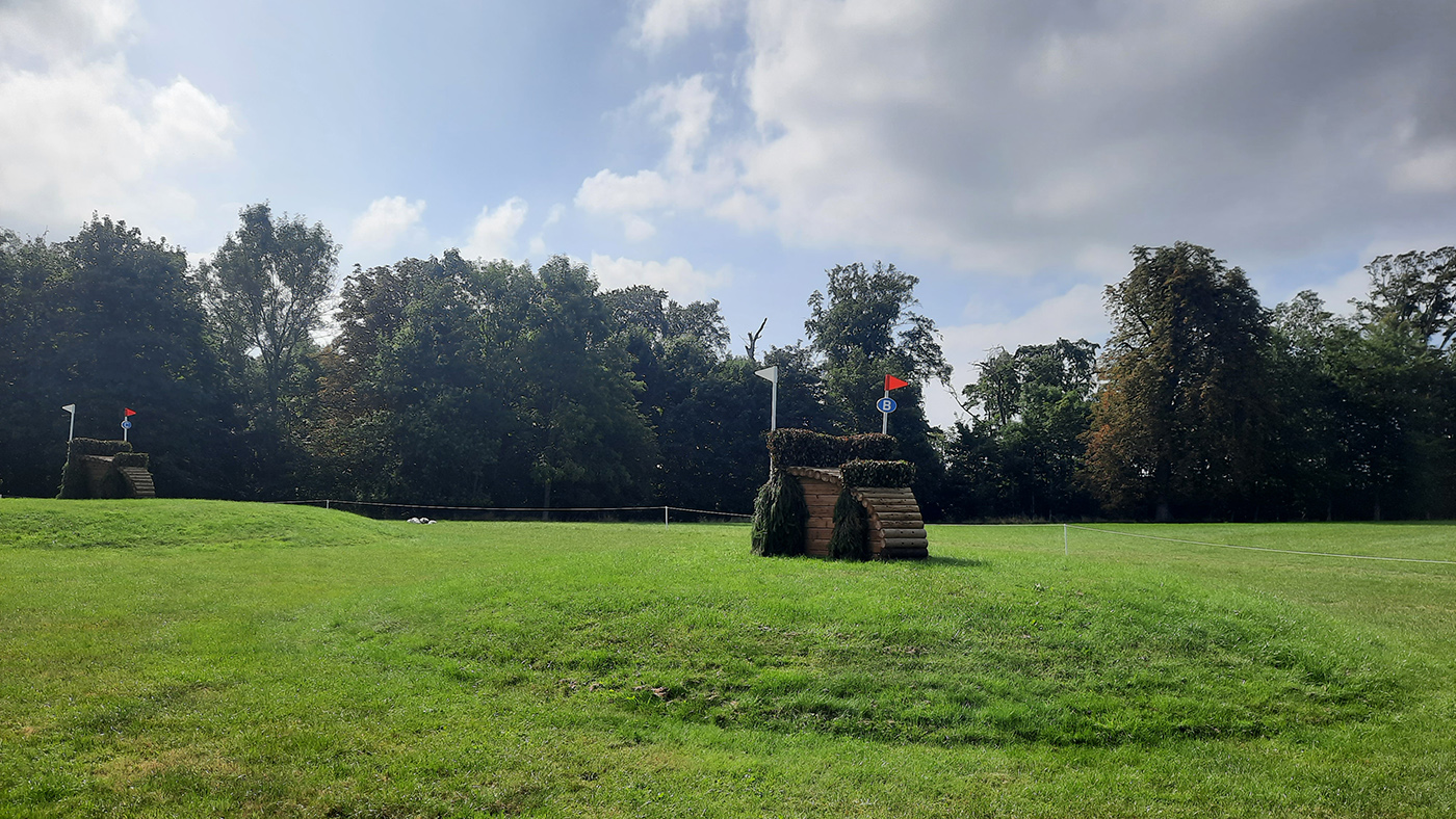 The CCI4*-S cross-country phase is held on Sunday (19 September), starting at 11am. It covers a distance of 3860m with an optimum time of 6 minutes 46 seconds, and features 20 questions, made up of approximately 34 jumping efforts. The exact number depends on the routes riders choose to take, as there are options at some fences.