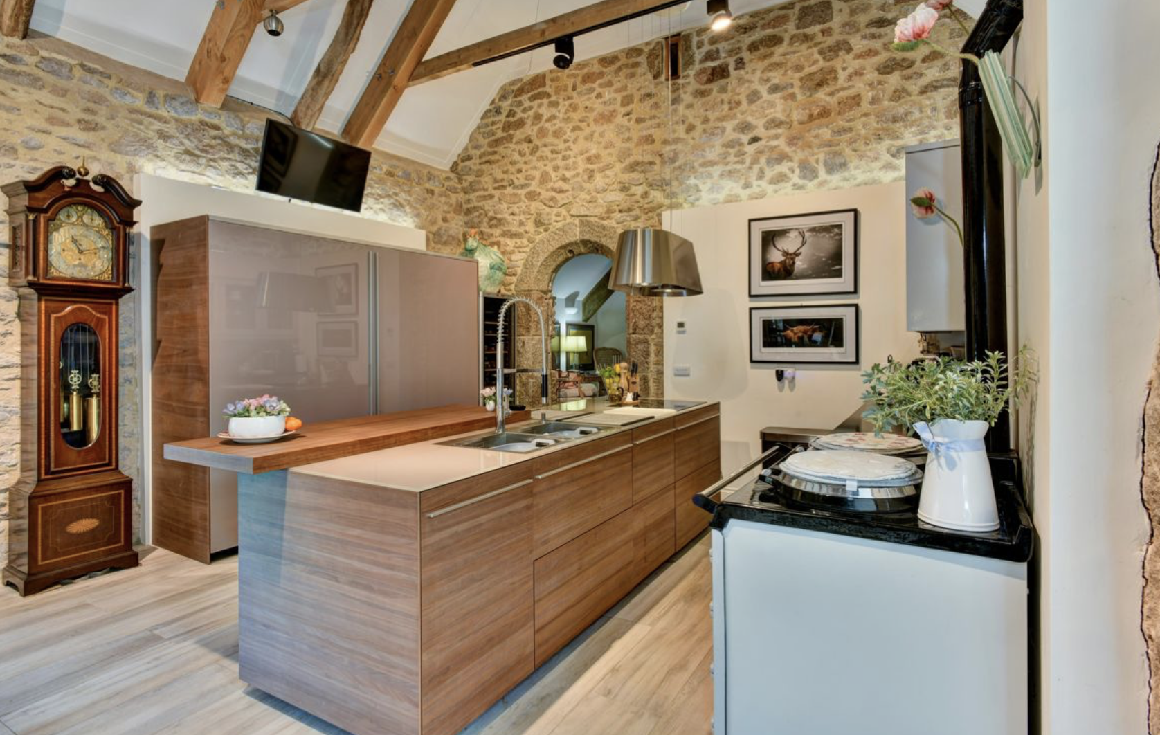 The barn has been completely renovated by the current owners with a contemporary interior including a designer kitchen opening to a dining/sitting area, off which is a large fully glazed sun room and private courtyard garden.