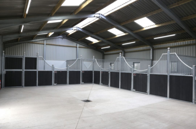 There is a smart steel portal framed barn, housing six stables and a secure tack and feed room, along with a wash bay. All of the stables have mats.