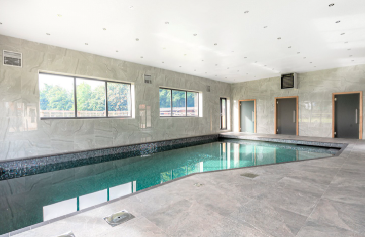 Approached via twin electric gates, Broadway House is a six-bedroom home with a leisure complex comprising an indoor swimming pool, steam room and sauna.