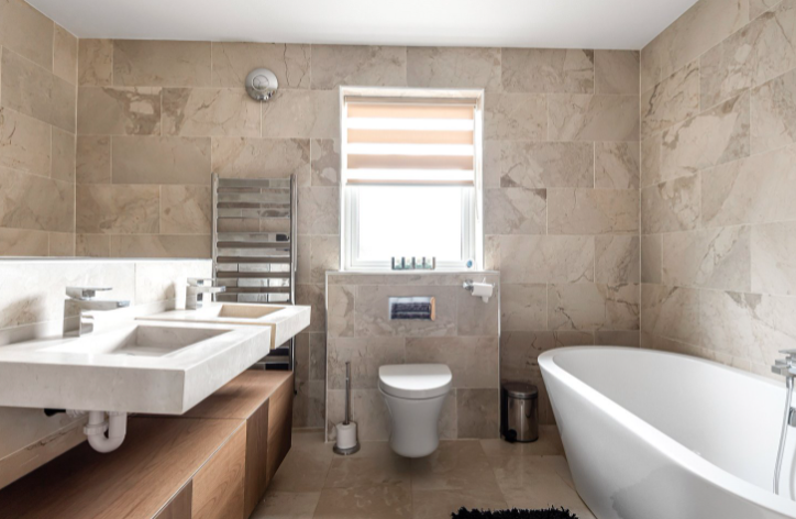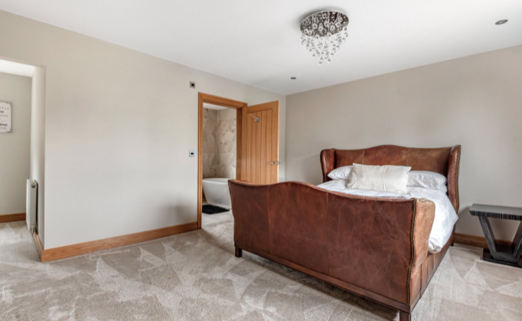 On the first floor is the main bedroom with a walk-in dressing area and an en-suite with a freestanding bath, walk-in shower and twin sinks.