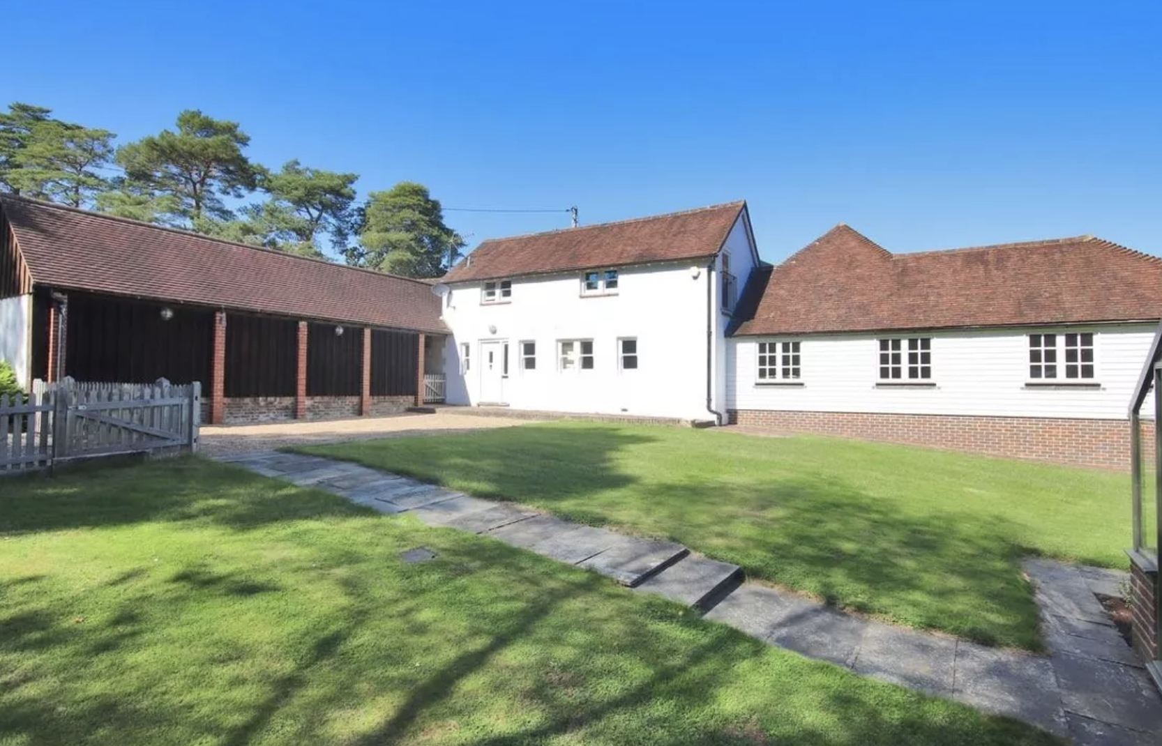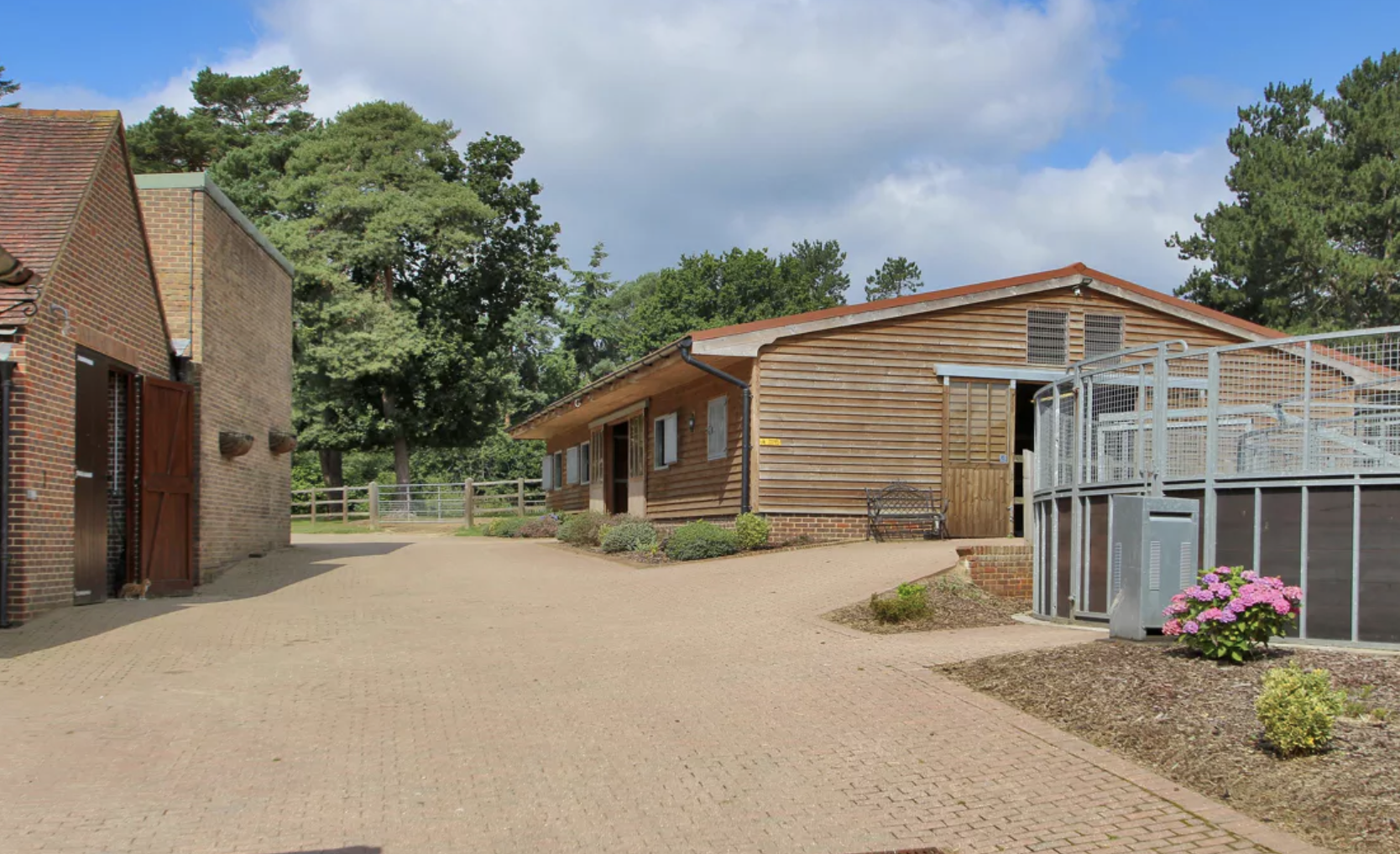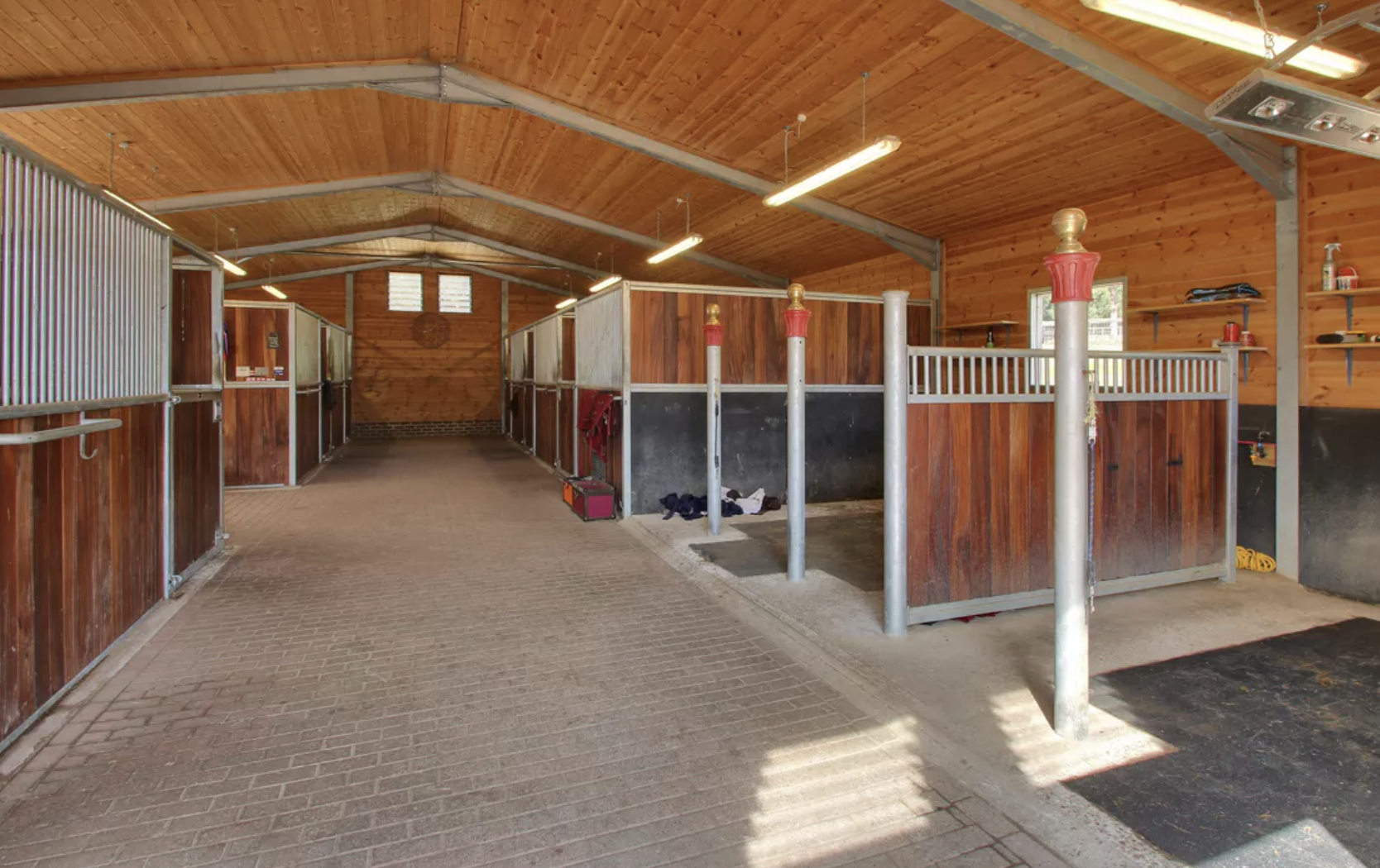 The compact equestrian facilities lie a short distance away from the main house and include a large American-style barn fitted with seven Hancox indoor stables, and two wash bays.