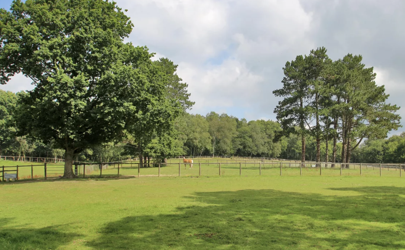 The paddocks lie on the northern side, together with a block of mature woodland, recently cleared to create a network of walking or riding tracks.