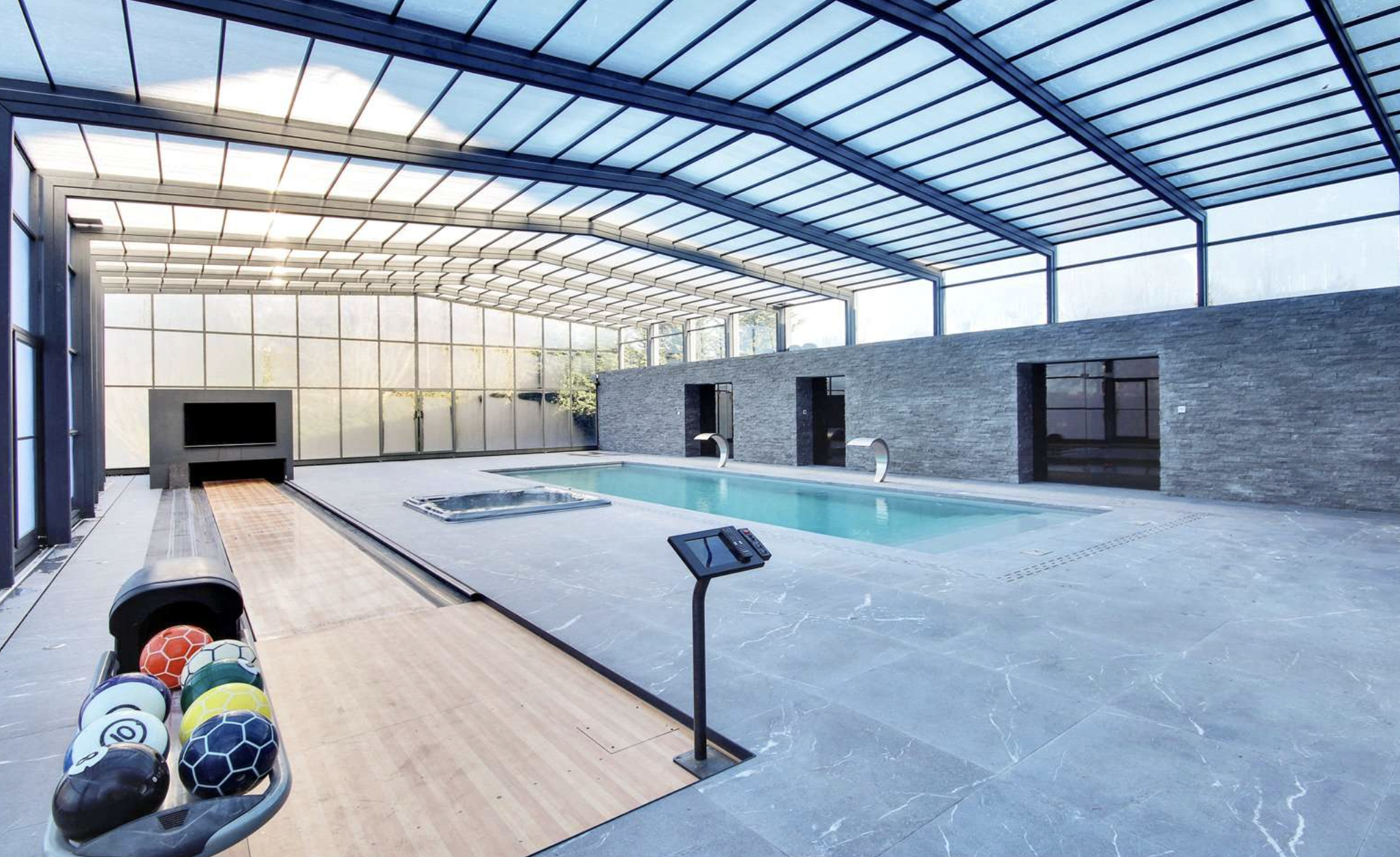 Accessed from the utility room, an enclosed walkway leads to a sports hall with a gym and pool/games area. There is also a leisure complex with a swimming pool enclosed by a fully retractable glass roof and an adjacent bowling alley.