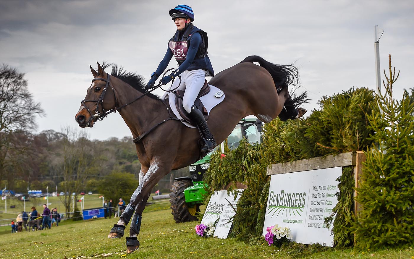 Alice Casburn riding the marvellously consistent Topspin, who is owned and was bred by Alice’s mother Caroline Casburn. They are another pair heading to Badminton and they jumped a double clear at Burnham Market to finish 17th.