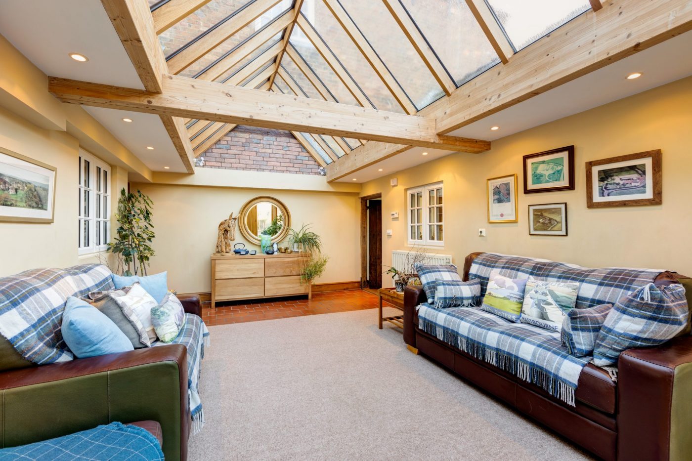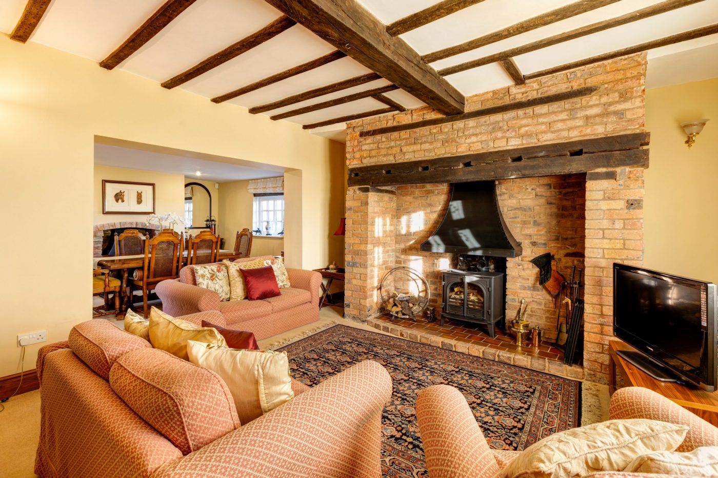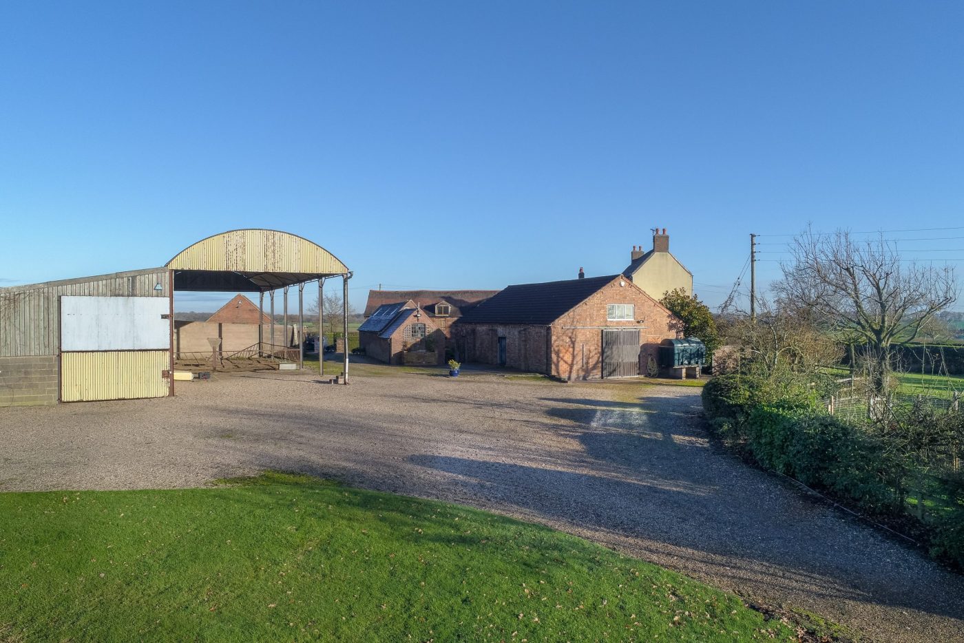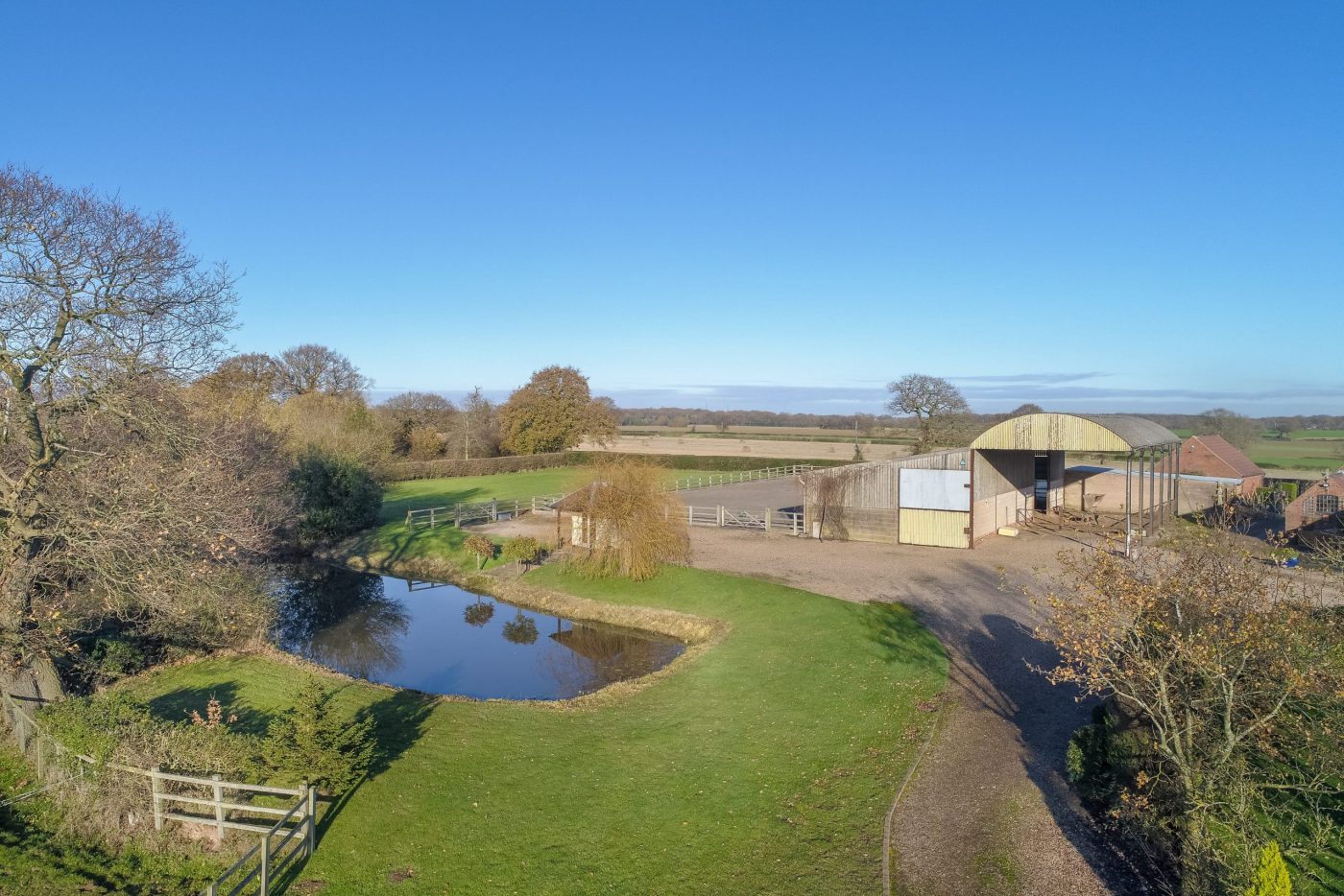 The old cattle yard is a Dutch Barn with lean-to and is used for indoor turnout and storage. There are further outbuildings used for hay storage, general storage and as potting sheds too. There is also a large red brick barn with traditional beams and inviting oak doors. The barn provides the perfect party room. There is also a double garage with electric doors.