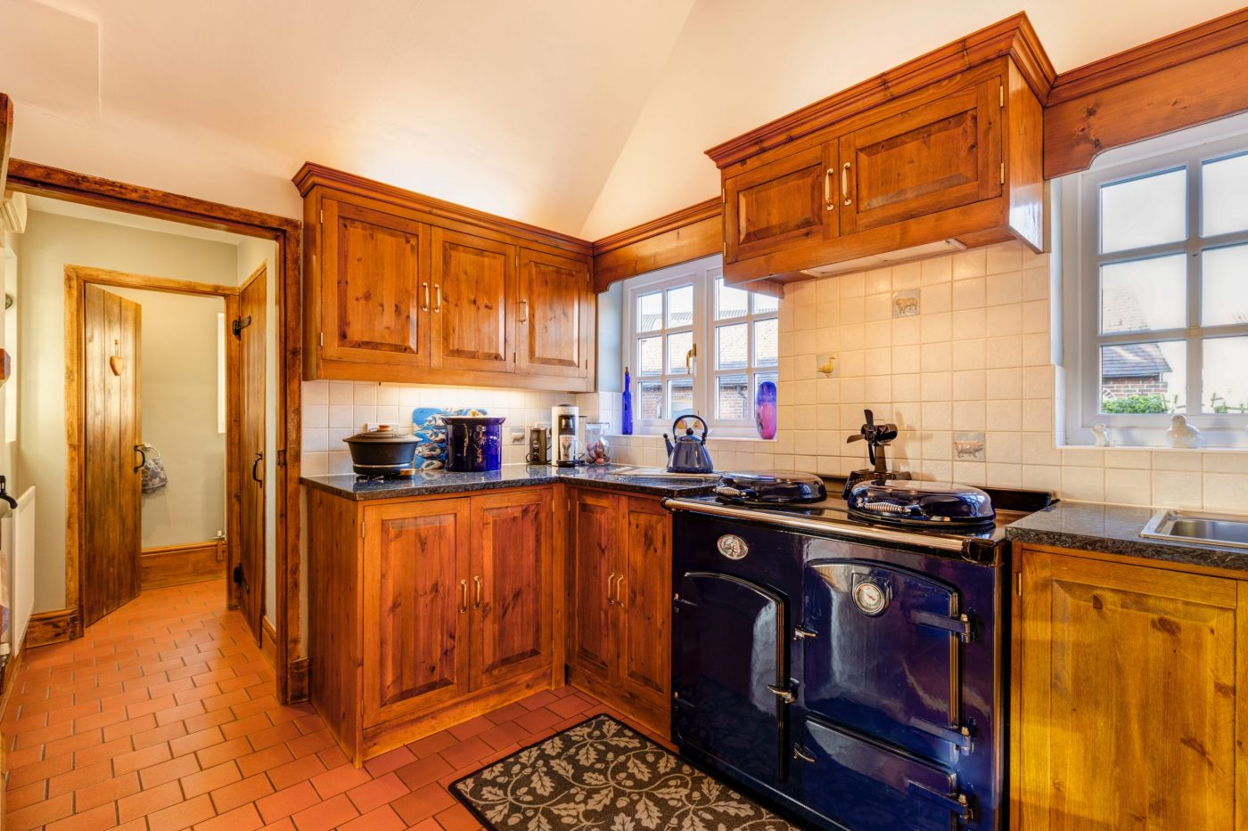 It has a farmhouse style kitchen with wall and floor mounted units with a utility room and cloakroom off from it.