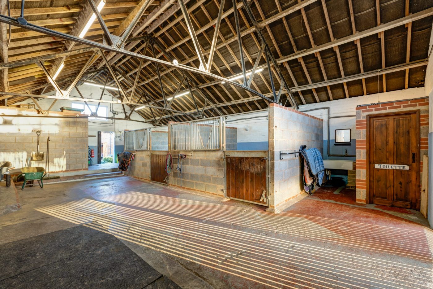 The old dairy is a large concrete block shed with two internal (12x12ft) stables and alarmed tack room.