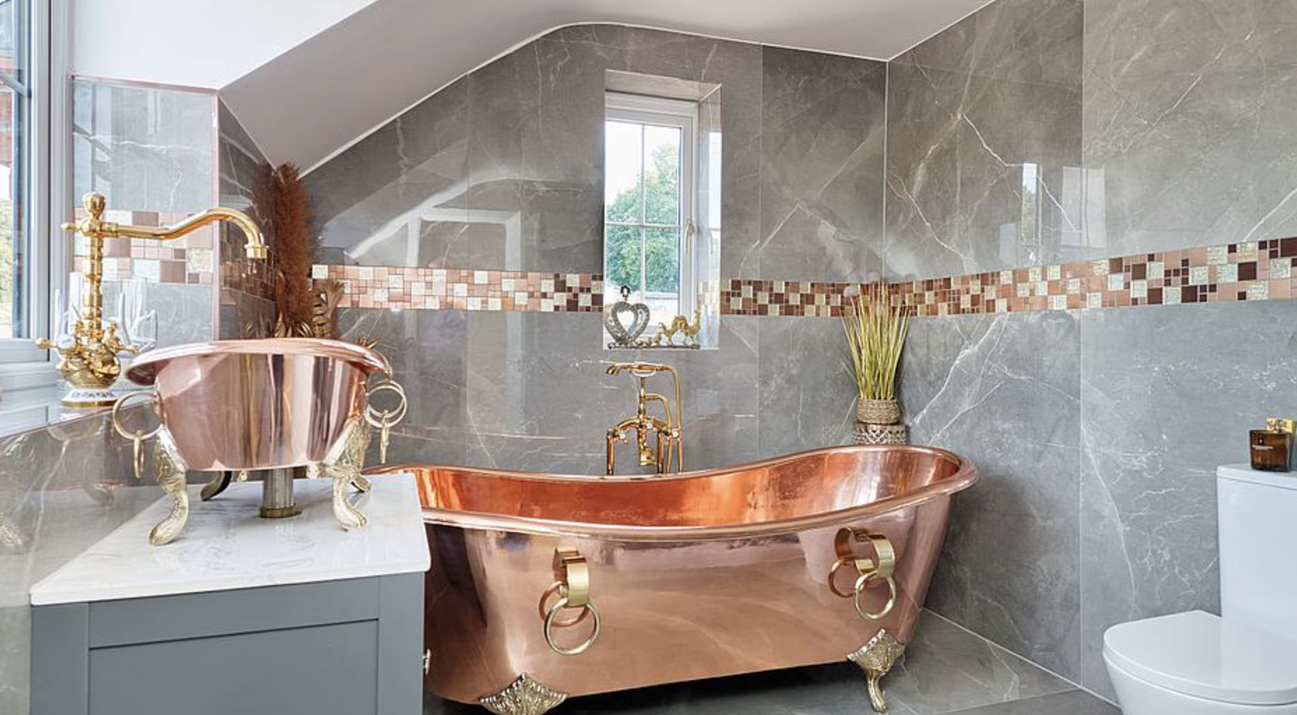 On the first floor there are three further bedrooms and another bathroom, with a double shower cubicle, free standing, rolled edge copper bath, hand wash basin and a loo.