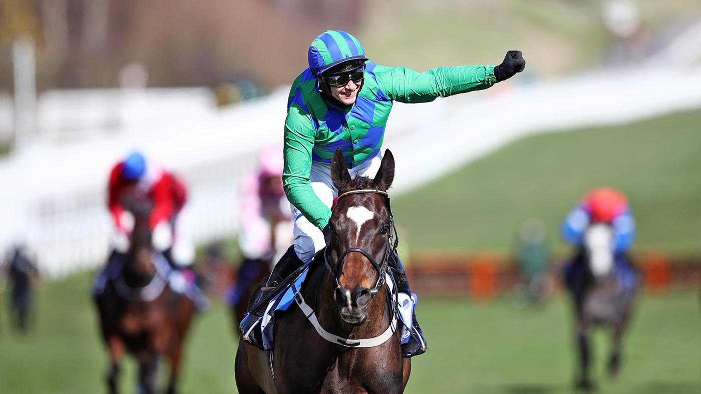Jockey Jack Kennedy celebrates winning the Gold Cup aboard the Henry De-Bromhead-trained Minella Indo for owner Barry Maloney. The outcome of this race ensured the Irish trainer became the first to achieve the Festival’s “Holy Trinity” of the Cheltenham Gold Cup, Champion Hurdle and Champion Chase.