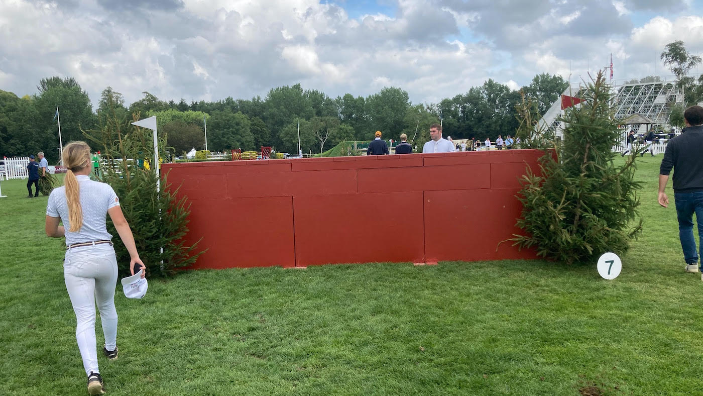 Fence seven also caused issues; two riders in a row were eliminated for two refusals at this unusual-looking wall, while others had a single refusal or tipped a brick out