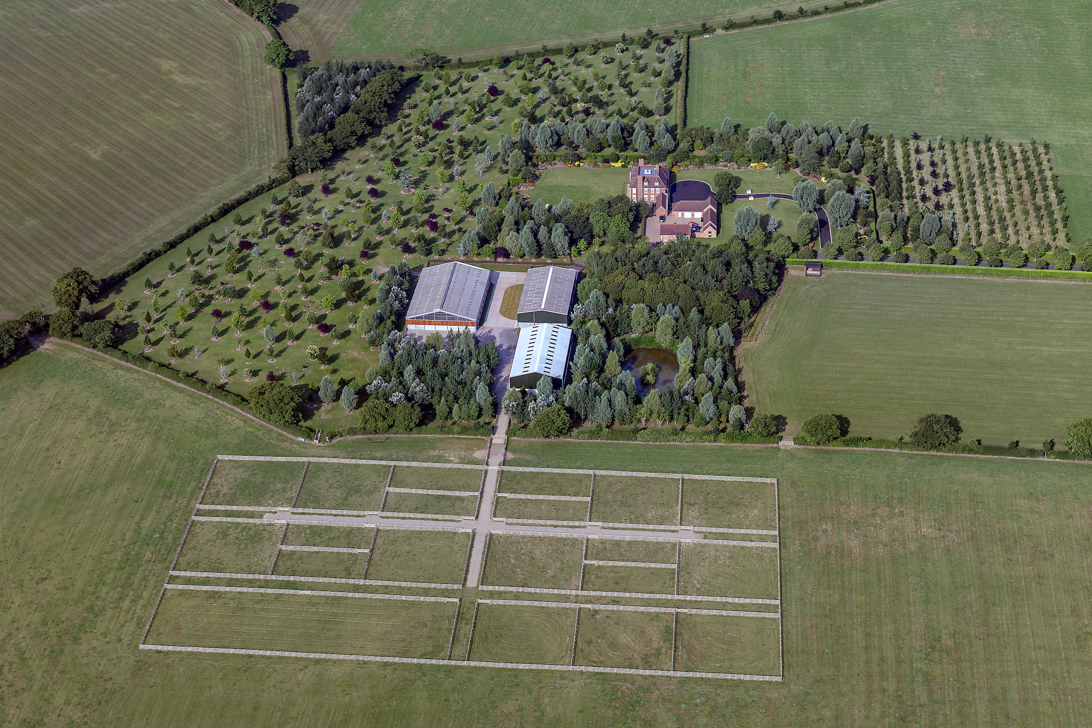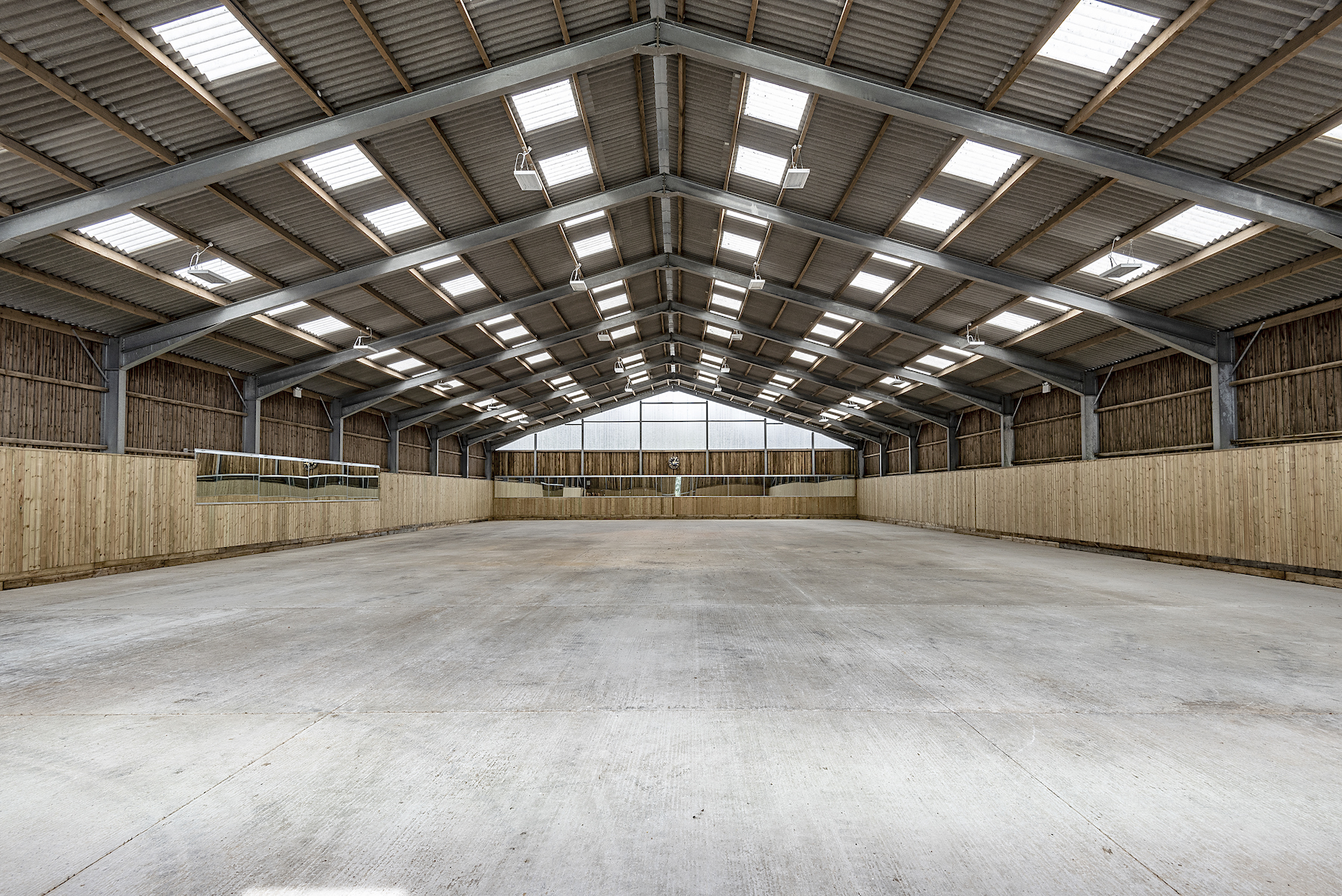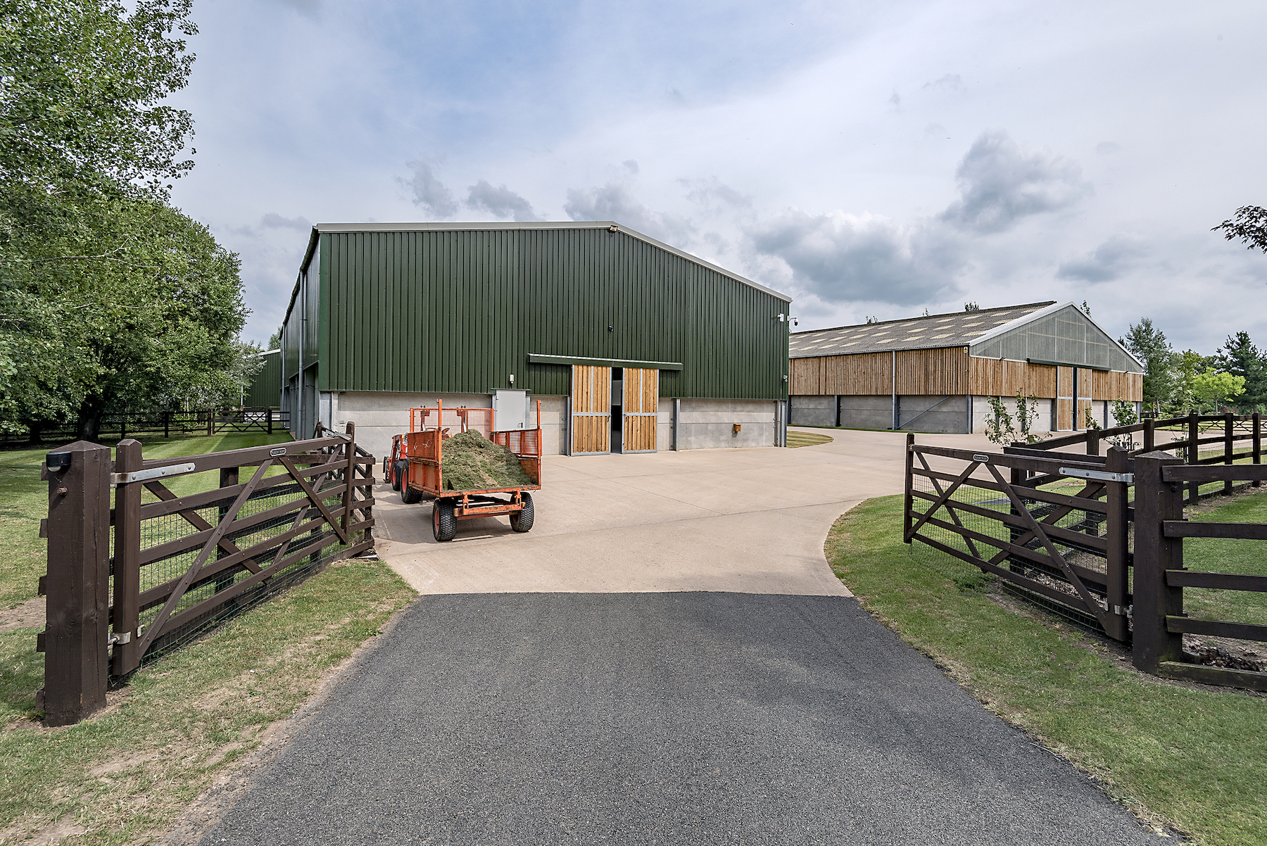 The equestrian facilities include three enormous modern farm buildings. One of these houses the Olympic-sized indoor arena.