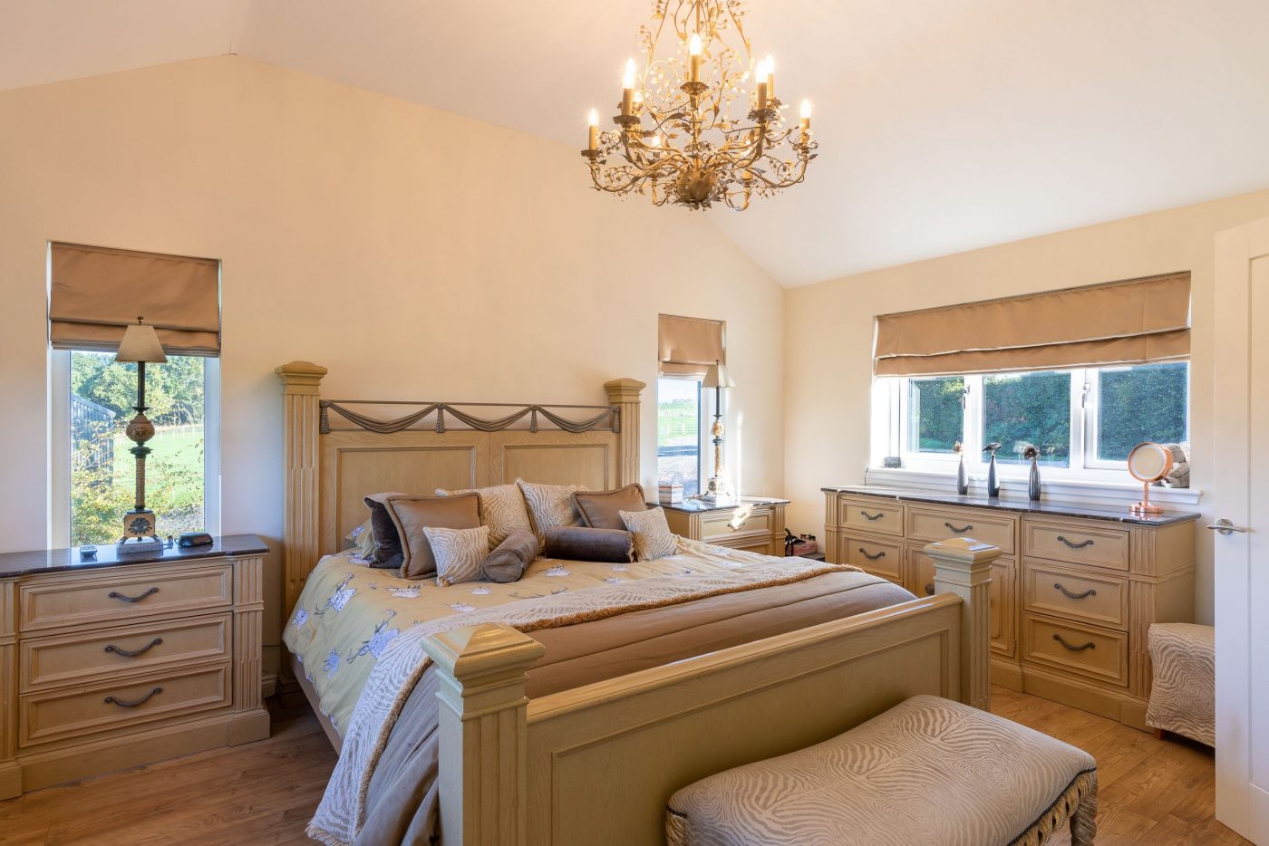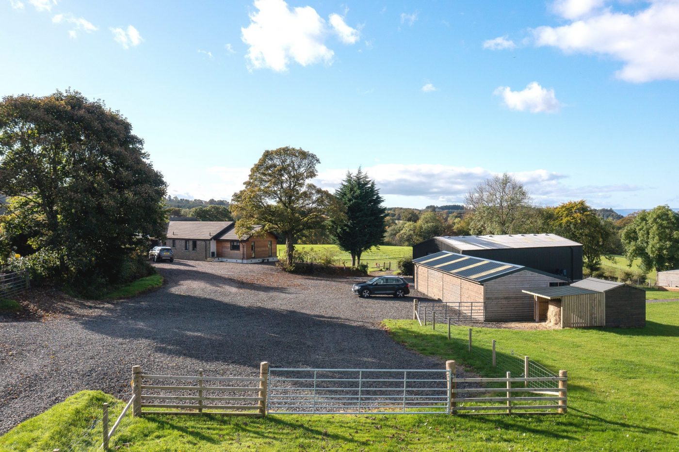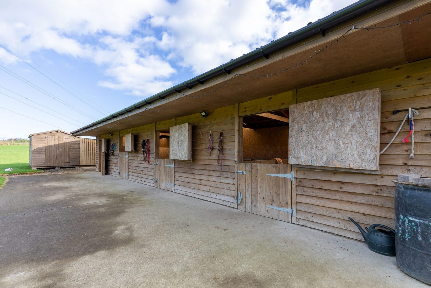 In all, the grounds extend to 13.88 acres. There are four grass paddocks with two wooden field shelters. A timber stable block, measuring 15.1×3.8m is on a concrete pad and has power and light. It opens to a small paddock with a gate to the larger fields. To the side of the stables is a further large timber tack room with additional hay storage to the side.