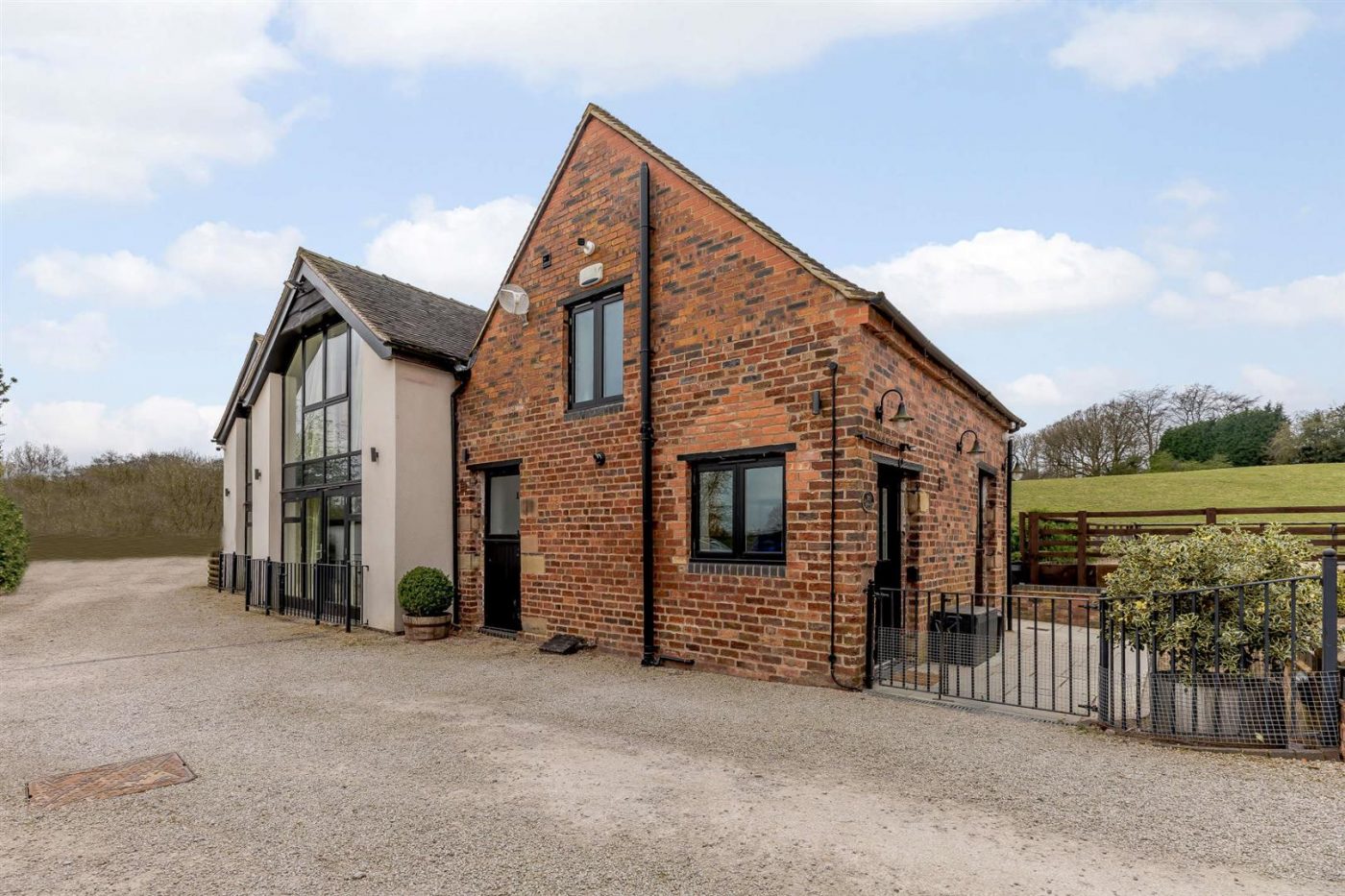 The main house is a four-bedroom brick-built property with gardens to the front.