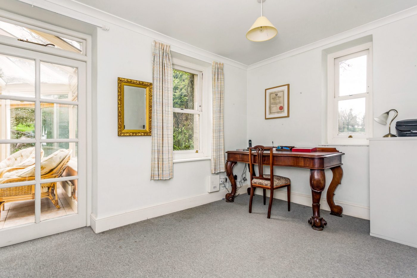 The ground floor accommodation is principally comprised of an entrance hall, a sitting room with bay window and wood-burning stove, a study, a dining room that opens to the kitchen/breakfast room complete with AGA and limestone flooring and a conservatory.