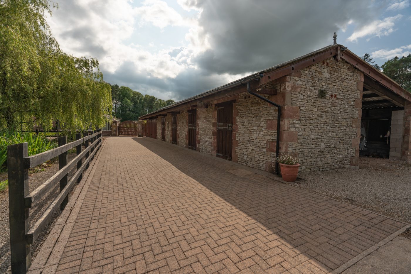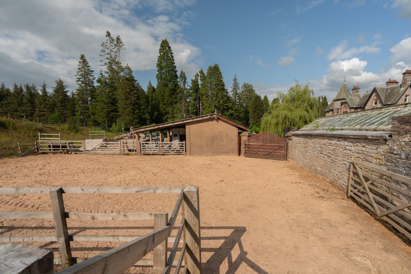 There are two stable blocks, one comprising three loose boxes, a tack room and a rug room and the other with three stables and a store.