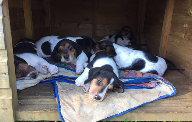 2. All tired out — these Four Shires Basset puppies have had an exhausting day, by the looks of it