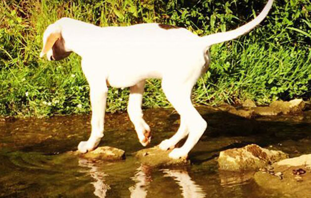 8. A Heythrop puppy enjoys an evening walk by the stream