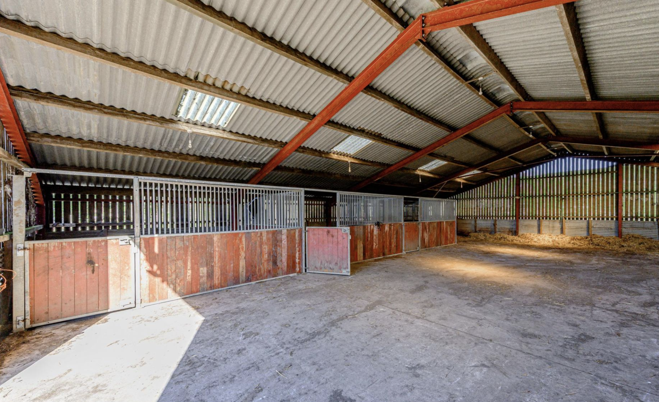 To the rear of the house, accessed by a separate driveway, are a range of outbuildings including a barn that contains three large internal stables. The buildings are a mix of semi-modern and traditional structures built of stone under slate or tin roofs, with a tin clad steel portal frame building, perfect for storage.