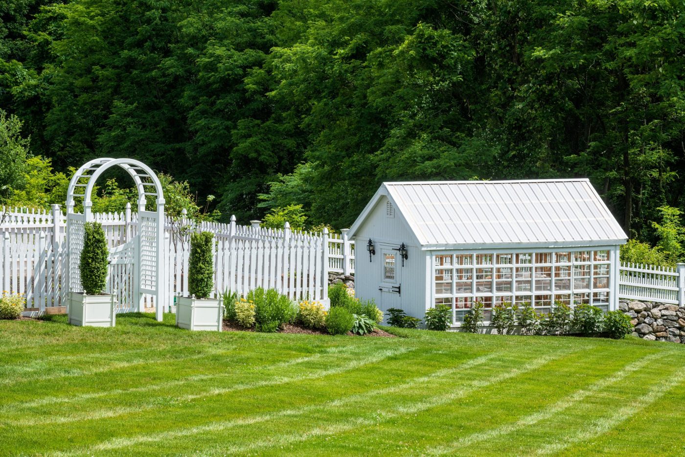 Other outbuildings include a barn with six stables and a lower level home office, a gym, a greenhouse, chicken coops, a goat house and a security studio.
