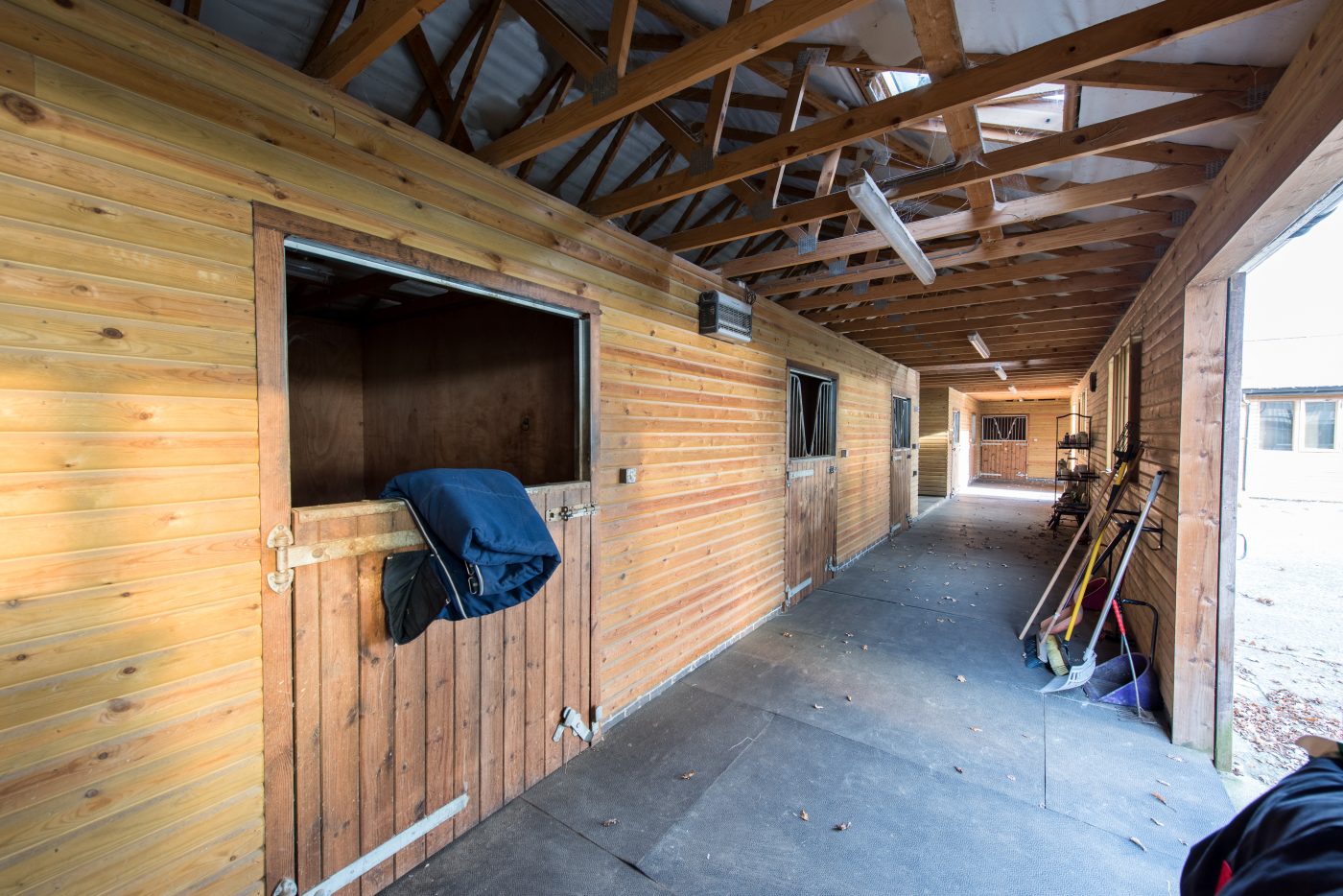 There is an American-style barn with eight loose boxes, seven being full size and one being a larger corner foaling box.