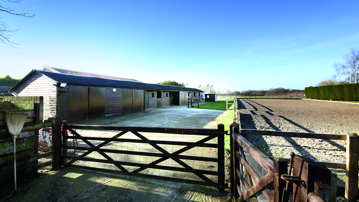 A gravel drive leads to the equestrian facilities, which are enclosed by post-and-rail fencing and are centred around a five-stable yard, with feed and tack room. There are three general stores — two of which could be used as a garage, plus a pony stable. Both water and electricity are connected.