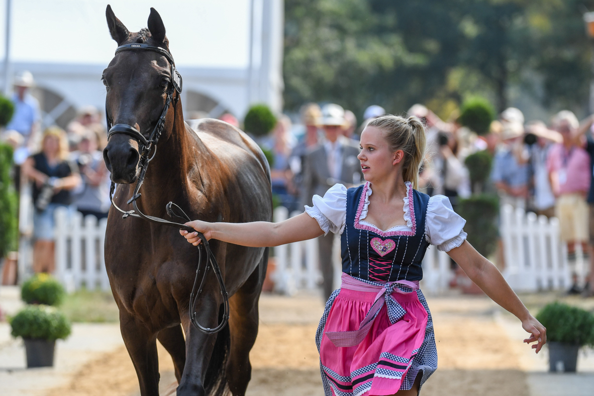 9. Hats off to Austria’s Dr. Harald Ambros who wore his native Lederhosen with confidence and pride in the searing temperatures of over 30°C while presenting his mount, Lexikon 2